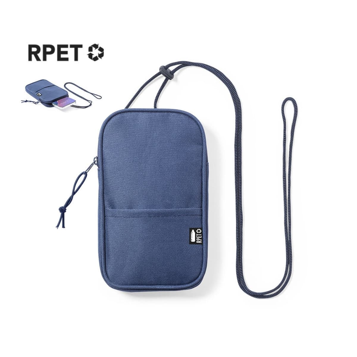 Main compartment with matching, invisible zip closure and drawstring puller. Matching shoulder strap, with outside pocket and lined inside. Available in a wide range of colours, with RPET label on the outside pocket. RPET material is made from rec