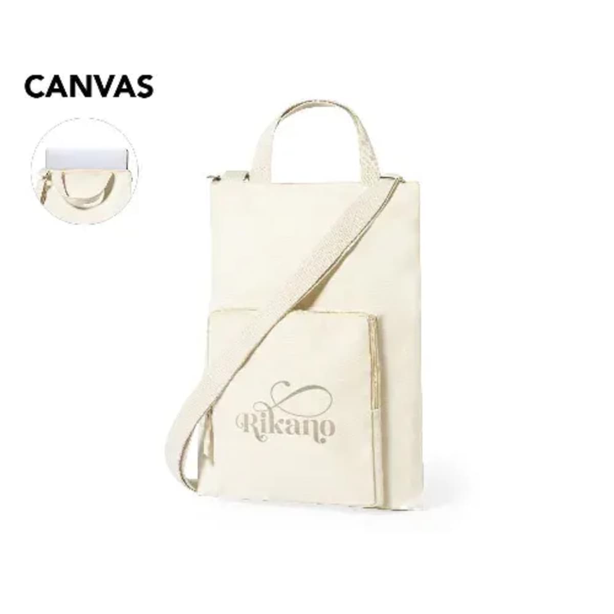 Main compartment with matching zip closure and carry handle. With matching adjustable shoulder strap and outside zipped pocket. For laptops or tablets up to 15 inches. Canvas is a quite versatile and durable fabric, mainly composed of cotton. An e