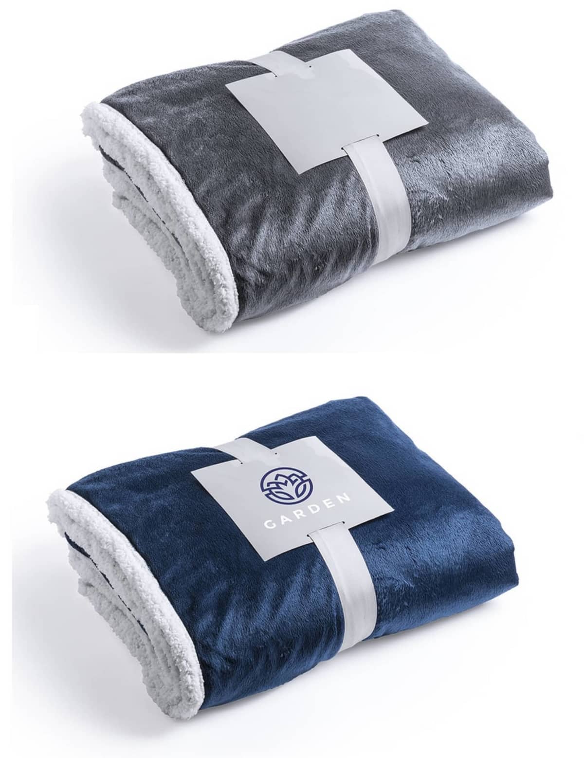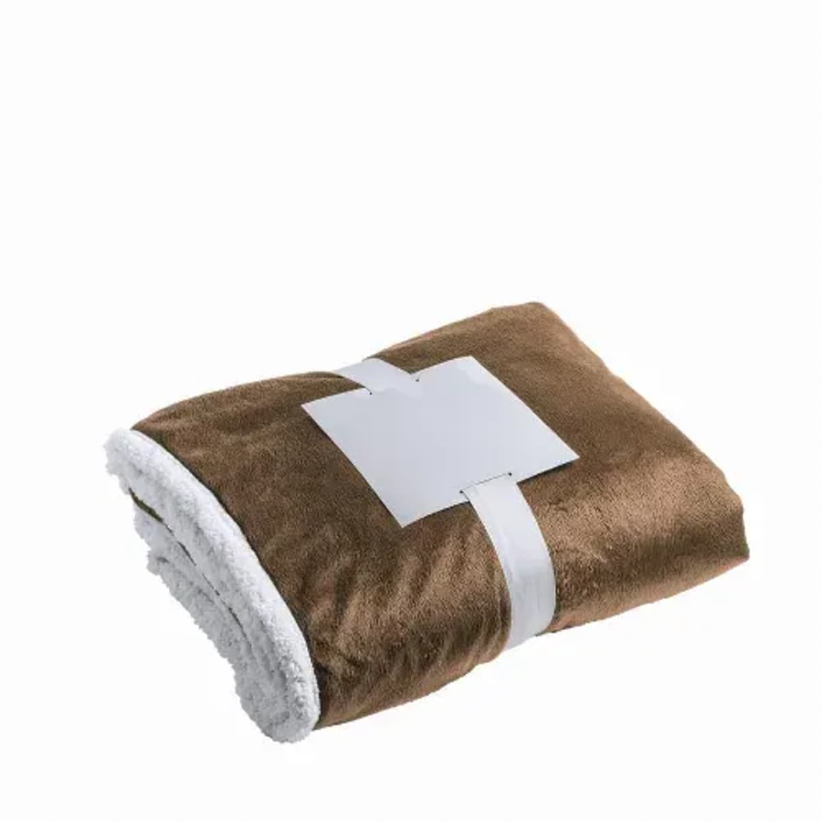 125x160cm size, in a soft and warm combination of coral fleece and sherpa materials in 380g/m2. Presented in a ribbon with a foil for easy printing.