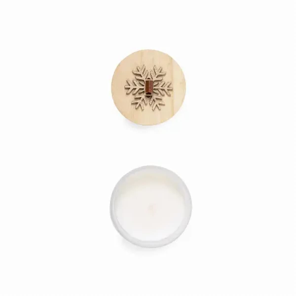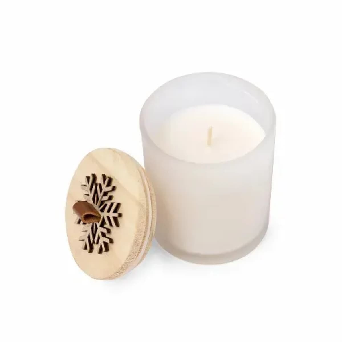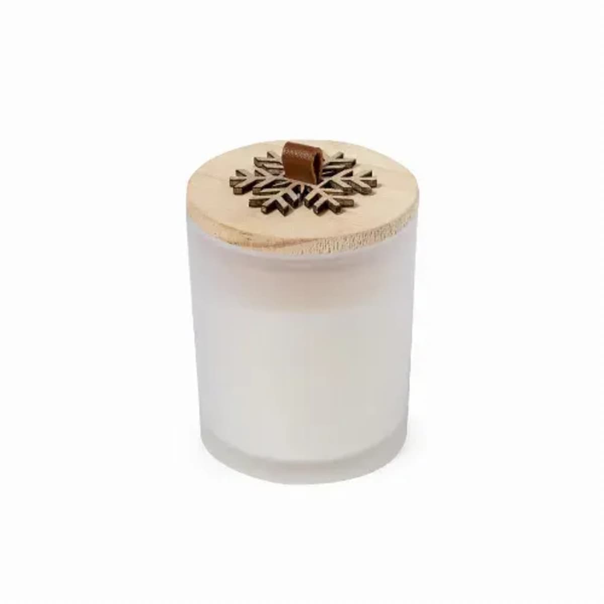 Features:  Made in glass, with polished wooden lid and snowflake design embossed on it. Presented in an attractive individual kraft box.