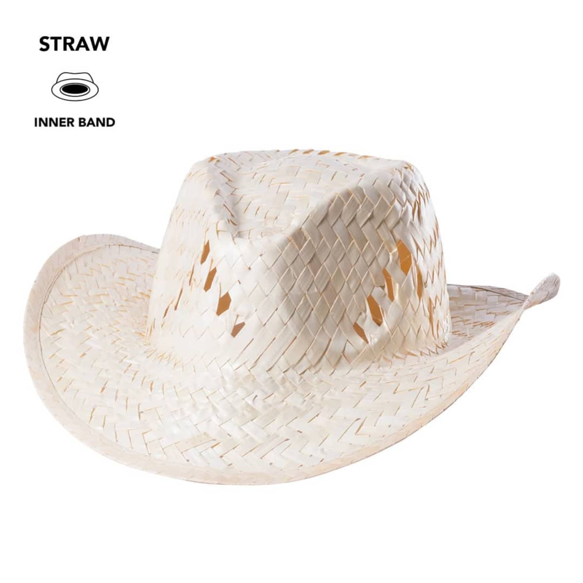 Straw hat in white color with comfortable inside ribbon and ventilation holes..