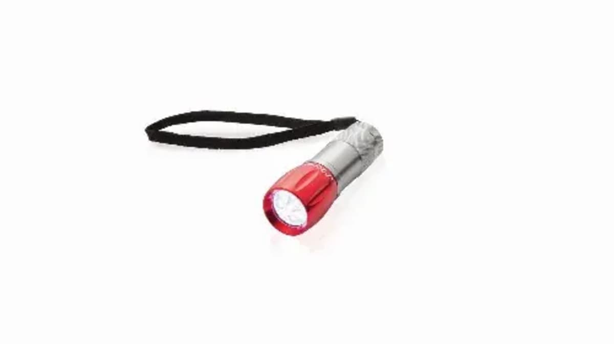 Resistant, bicolor aluminum body with non-slip handle, push-up mechanism protected with resistant rubber coating and carrying strap. Battery power supply: 3xAAA not included. Presented in an attractive design box with the brand logo.