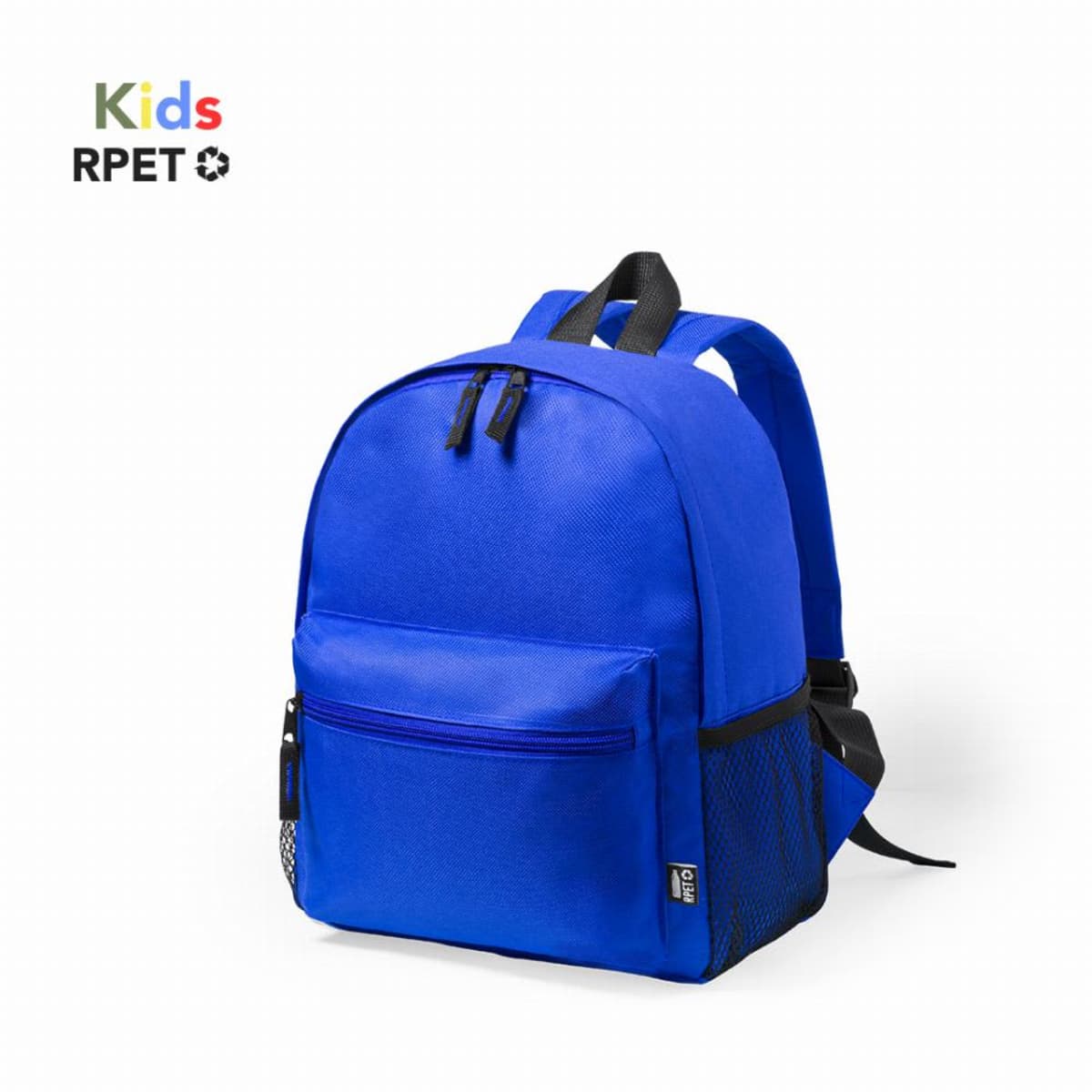Kids backpack in durable 600D RPET, made from recycled plastic, to encourage the reuse of plastic waste and help the sustainability of the planet.
