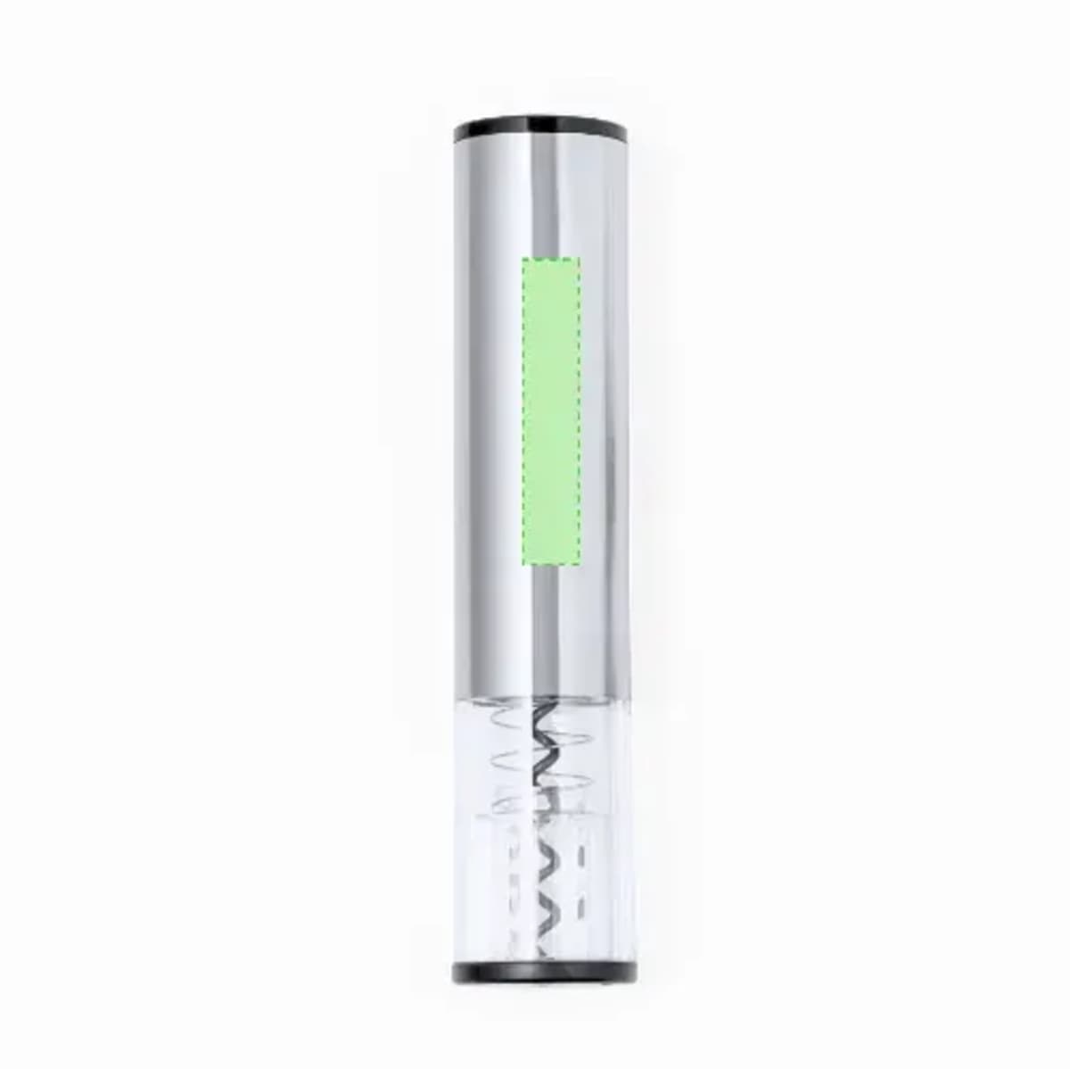 On the side of the base centred 60mm x 15mm pad print On the cork screw side centred 15mm x 79mm laser engraved