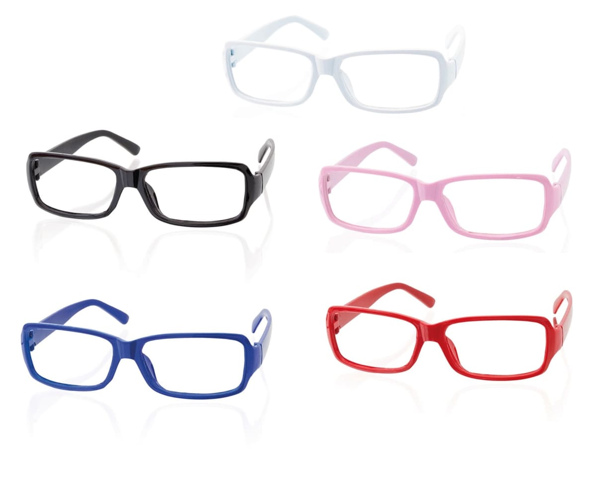 Original eyeglass frame without lenses with frames in a wide range of bright tones.