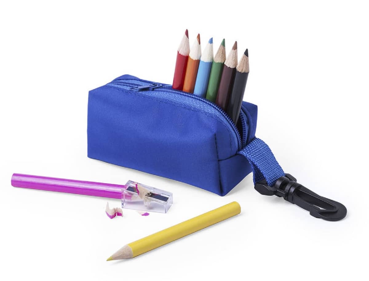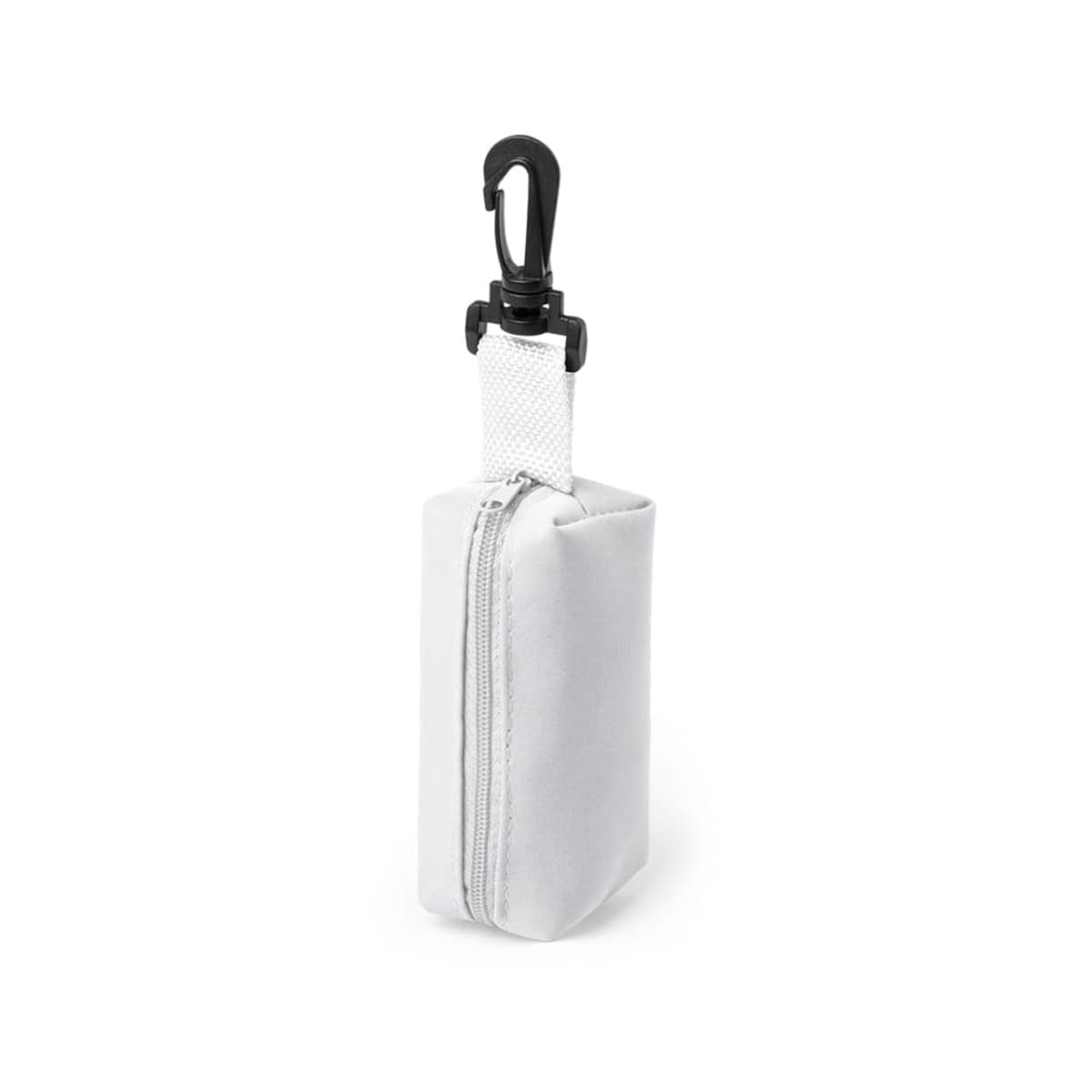 Case with matching color zipper closure in 420D polyester, in varied colors and with twisting carabiner accessory.