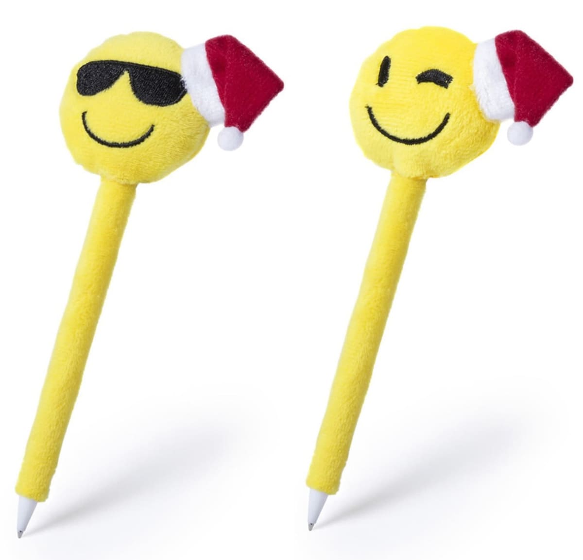 Ball pen with fun Christmas Emoji designs in eye-catching yellow color.