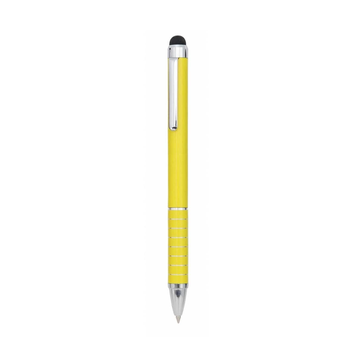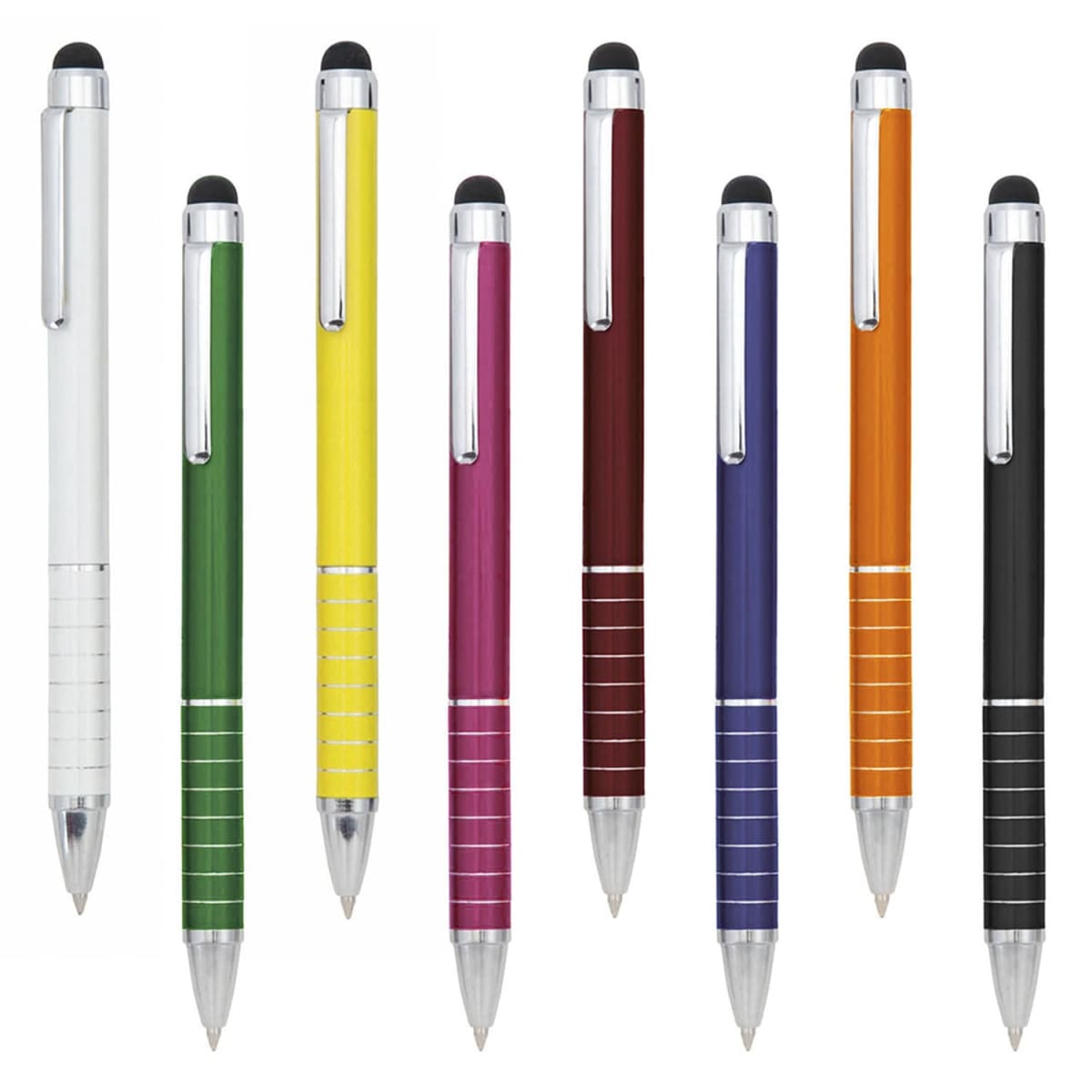 Pointer ball pen with twist mechanism and aluminum body in smooth metallic finish and bright tones.