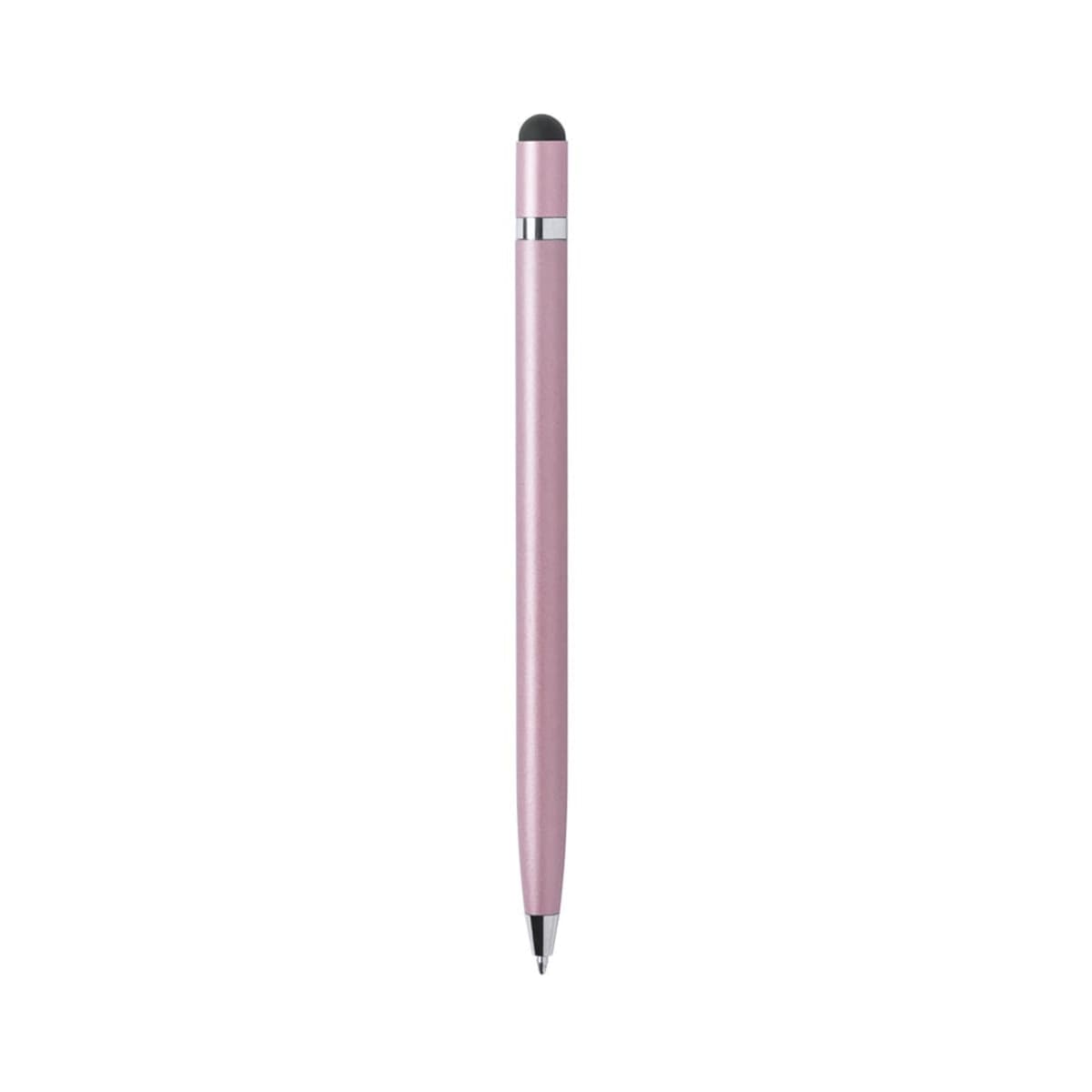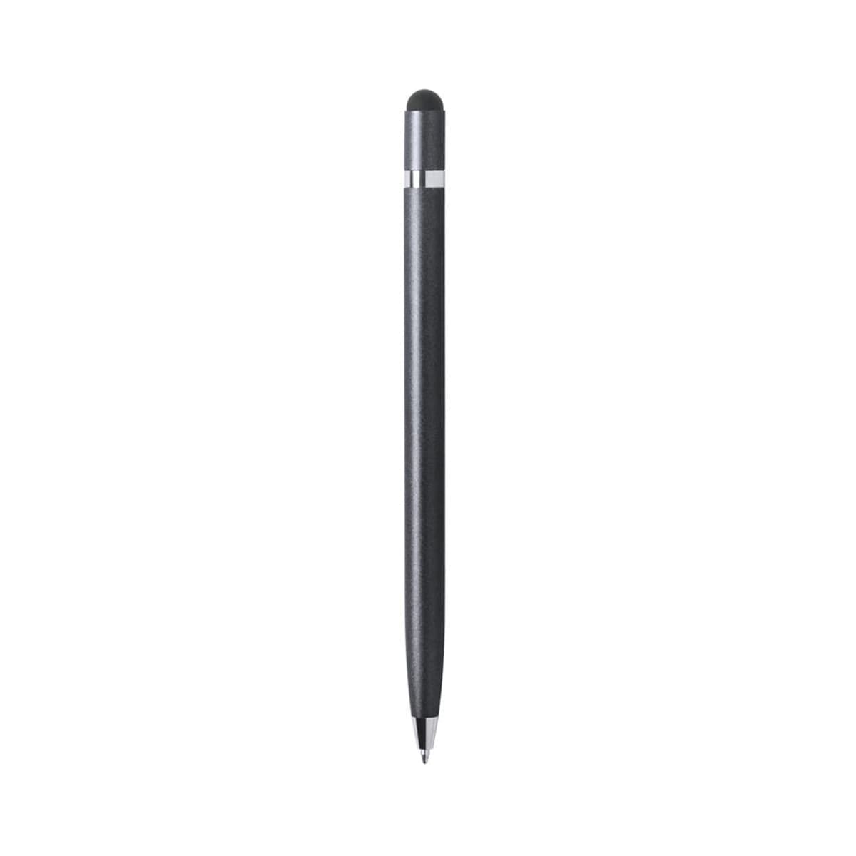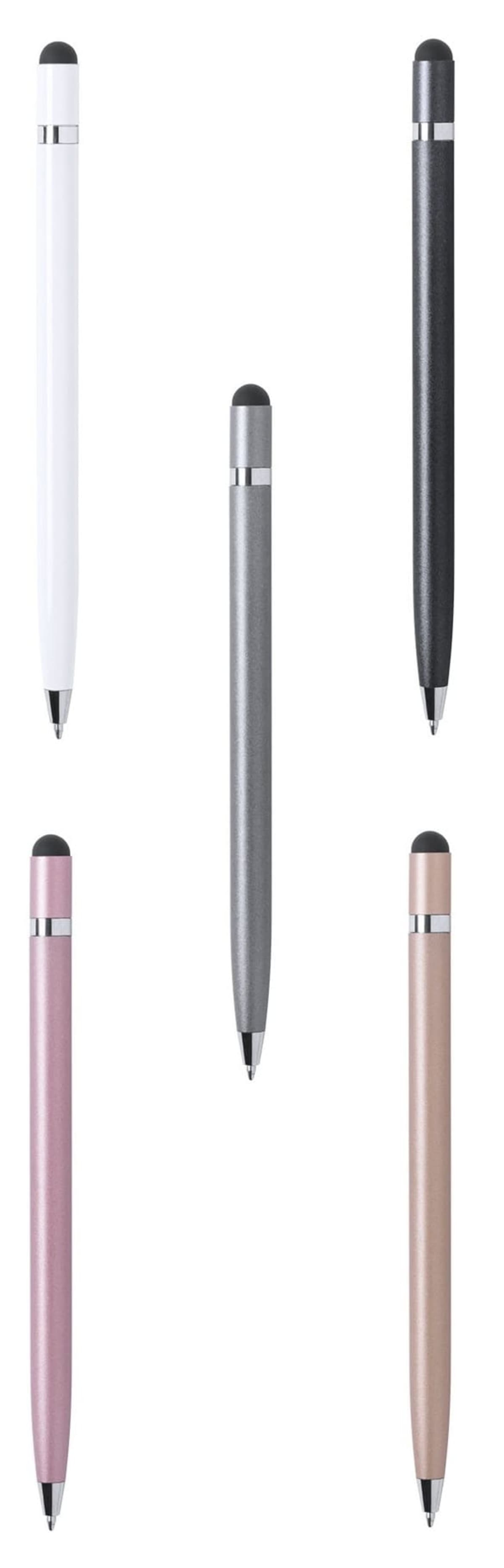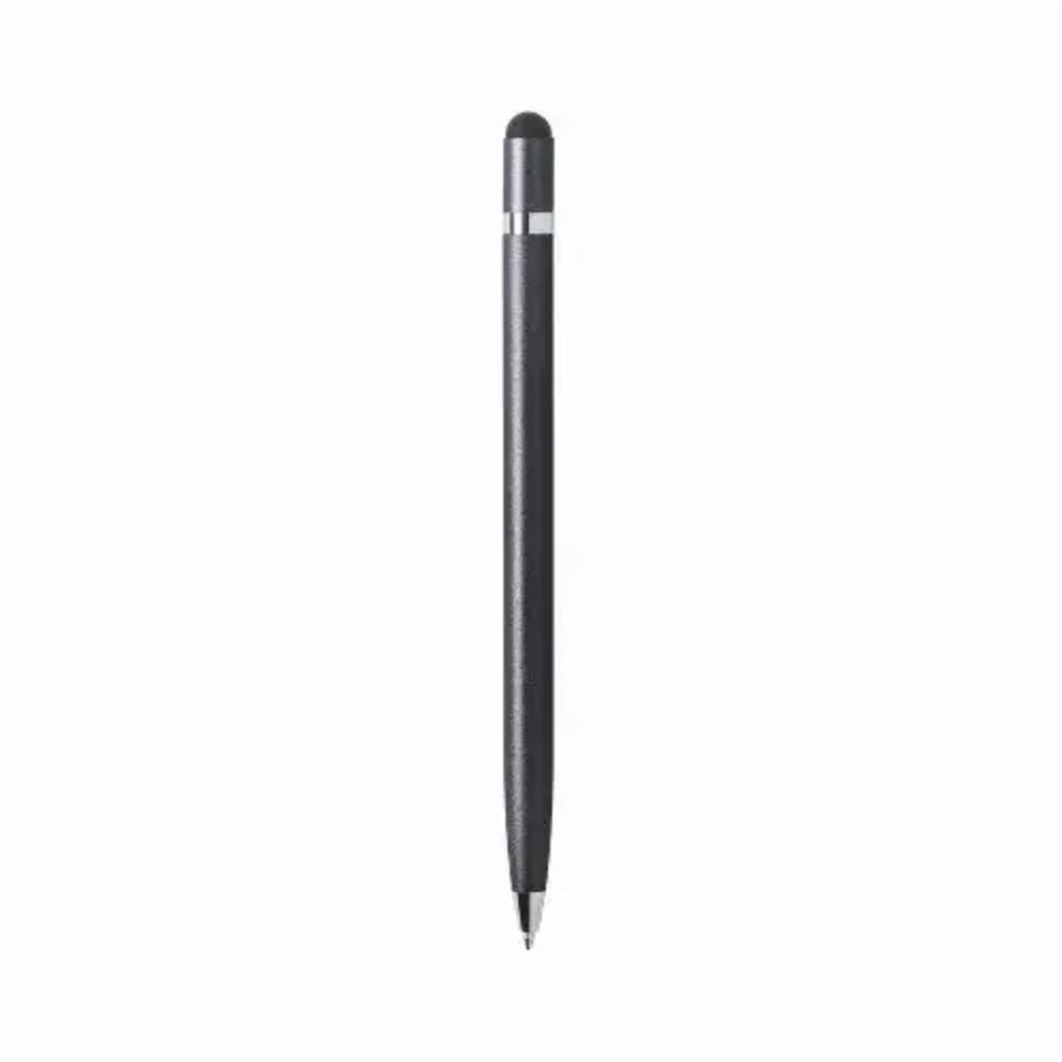 Pointer ball pen with twist mechanism and aluminum body in smooth metallic finish.
