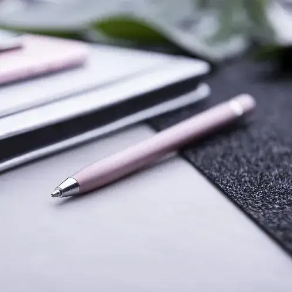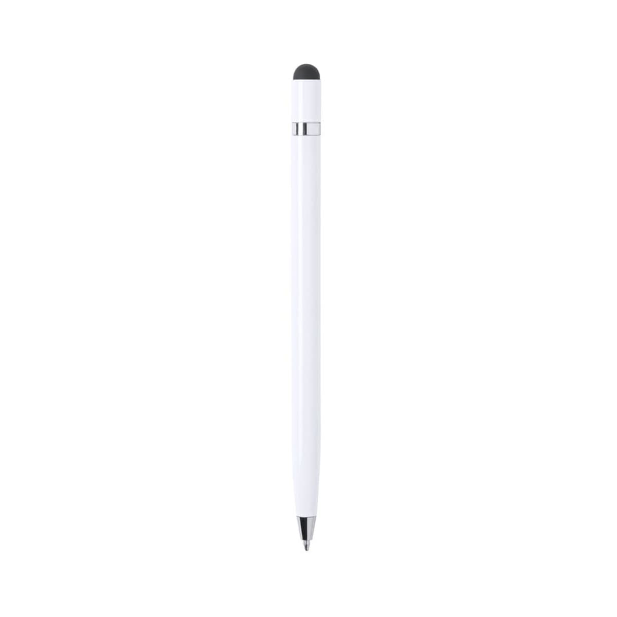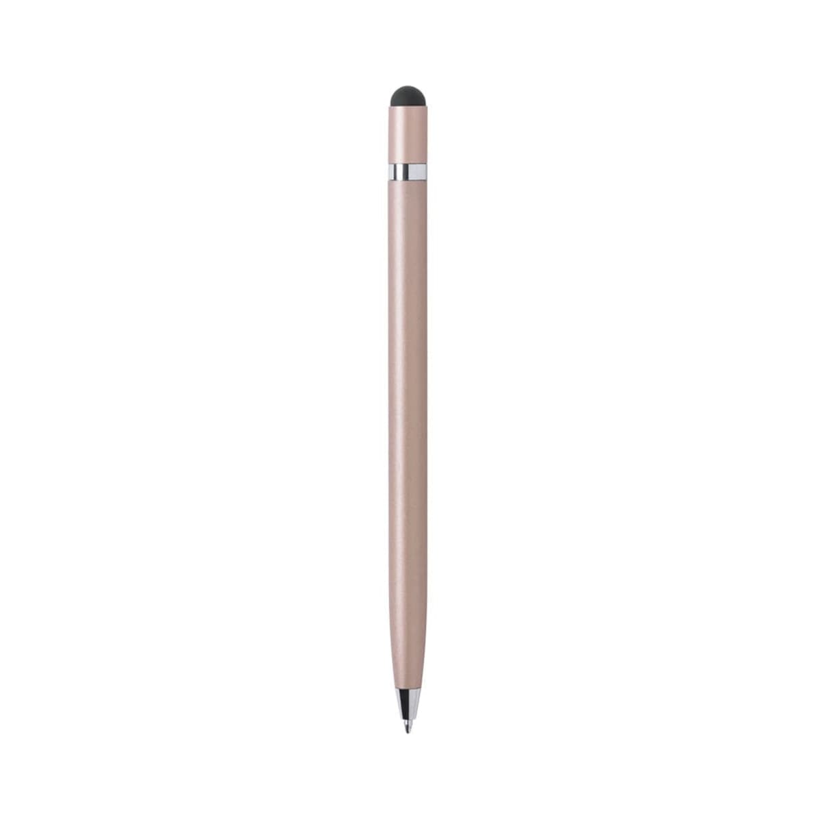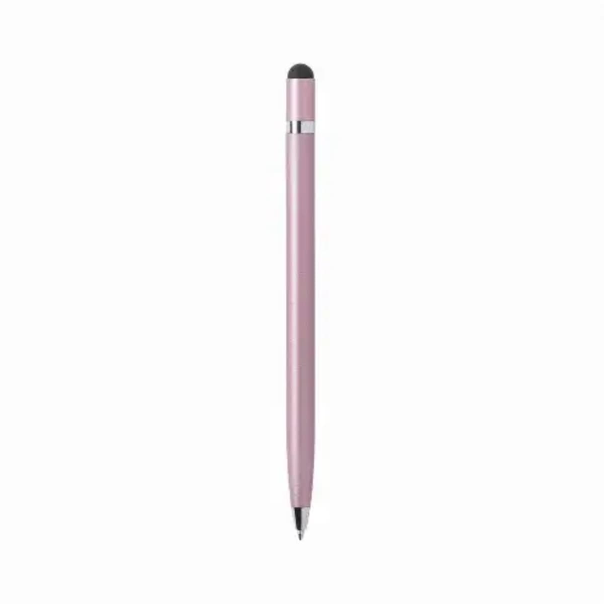 Pointer ball pen with twist mechanism and aluminum body in smooth metallic finish.