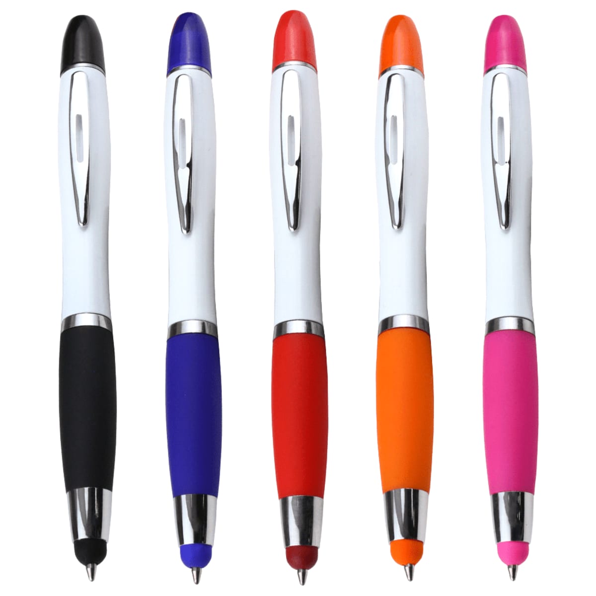 Wax highlighter with a removable cap Twist action ballpoint pen with stylus Black ink Clip