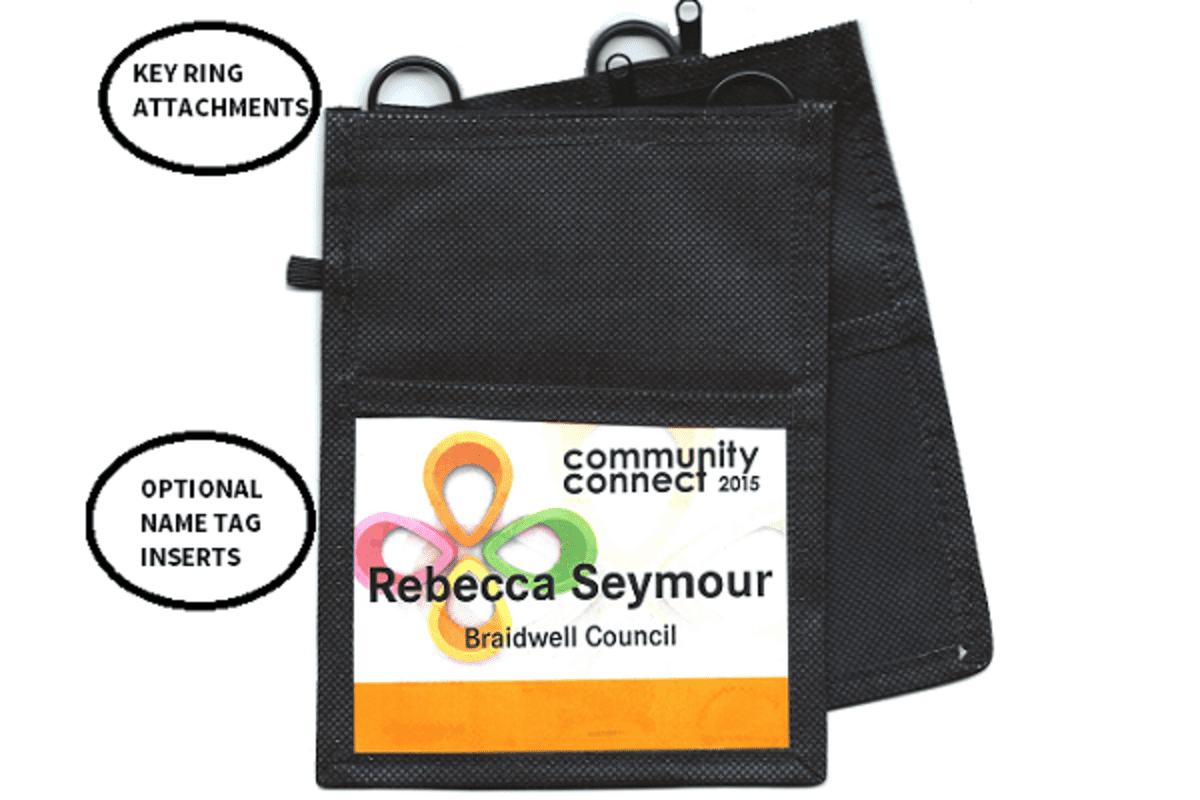 Our nylon neck wallets with 3 compartments; Front pocket 113mm wide by 88mm high; Reverse pocket 110mm high x 100mm high; Zippered Pocket 180mm x 150mm – handy as it fits a passport inside. Black only and supplied with printed name tag insert with names and logos. Lanyard not included.
