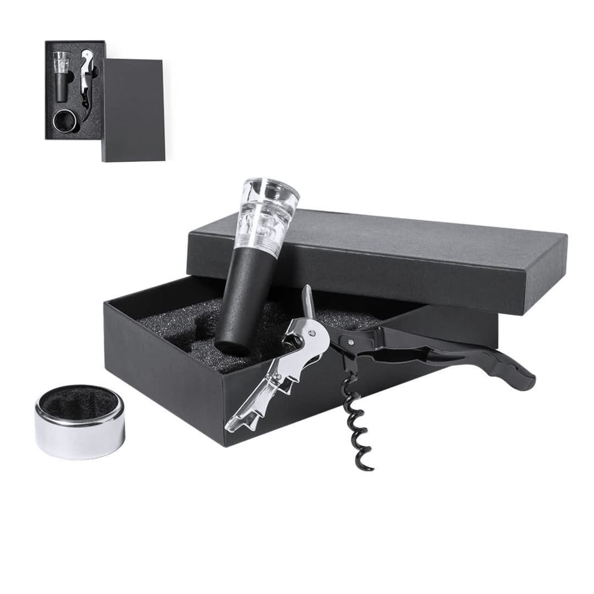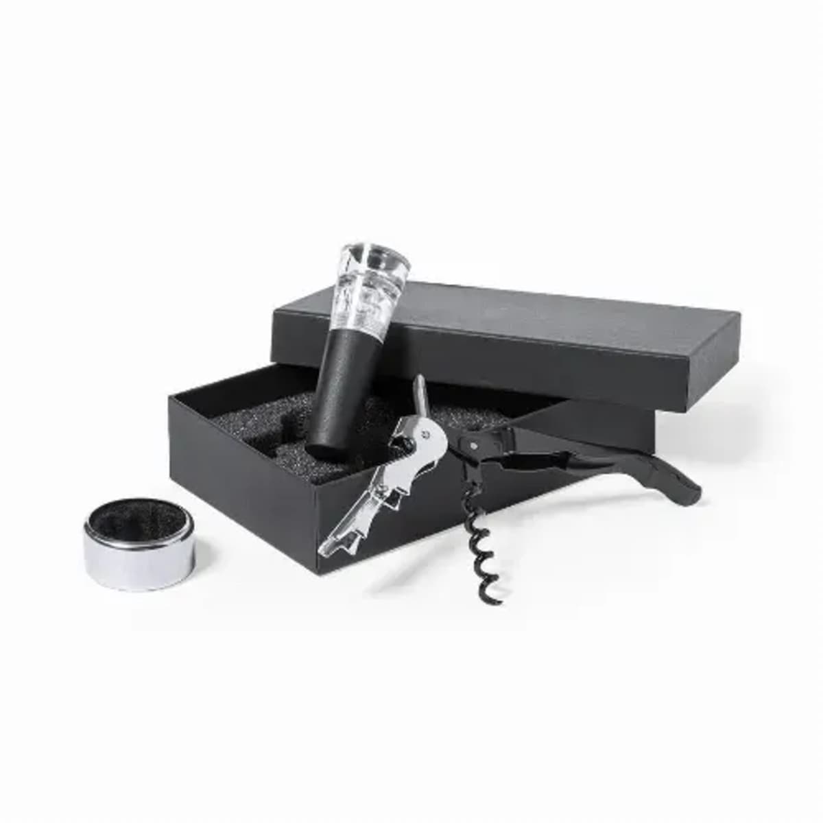 Ultimate wine set in a sober black finish, presented in an individual case with foam die-cut inside and inside white protective sleeve.