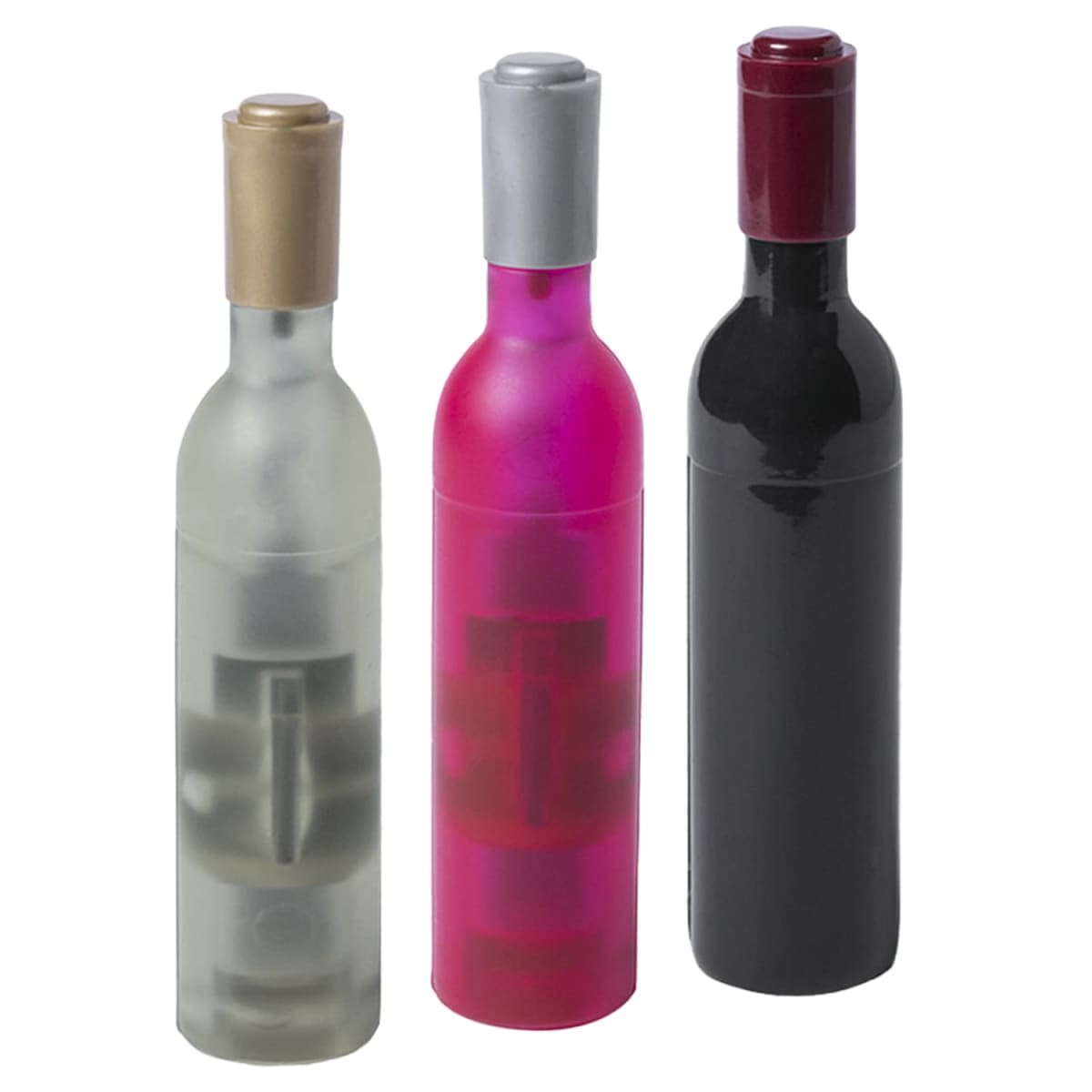 Fun magnetic corkscrew with the shape of a wine bottle in white, red and rose wine designs.