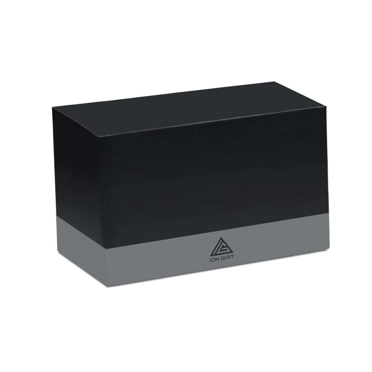 Multi functional torch, PC (Polycarbonate) and TPR (Thermoplastic Rubber)|Search light with 3 x LED P70 bulbs, Output Lumens: 2500lm – High|30W LED white light, Distance: 800m, Search light approx. 4-12 hours of run time|Function button switches between 4 modes: High, Medium, Low, Strobe, Integrated reflector and lens|Flood lights with 2 x COB, Output Lumens: 1200lm – High, 20W LED white/yellow light|COB button switches between 5 modes: white high & low, yellow high & low, combined white/yellow|COB light approx. 8-15 hours of run time|2 x 4500mAh rechargeable 21700 batteries|3 x extendable/retractable leg stands|Telescopic stand with 180 degree counterclockwise rotation/folding COB flood lights|Approx. 8 hours of re-charge time|Dual interface input and output, USB output charging, Type-C input charging cable included|White LED digital light screen indicates % battery level, Can be used as a power bank|Waterproof: IP44 rating|Ergonomic handle with rubber grip, grab handle on end|Net weight: 1.15kg|Supplied in an Ion Grit presentation box (27cm W x 16.5cm H x 13.5cm D)|