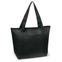 Affordable large 15L cooler bag which is manufactured from 80gsm non-woven material with an internal lining of aluminium foil laminated PE foam insulation. It has a zippered closure, a slip pocket on the front and longer handles so it can be carried on a shoulder.