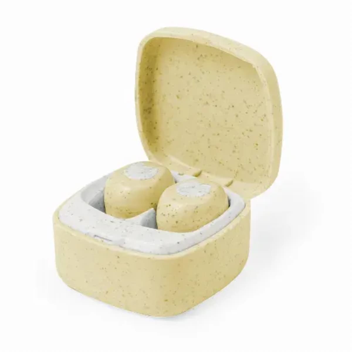 Earphones made of wheat straw, with Bluetooth® 5.0 connection.