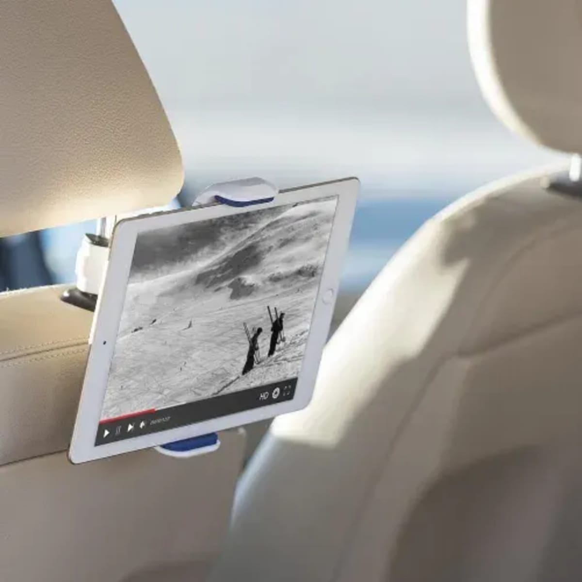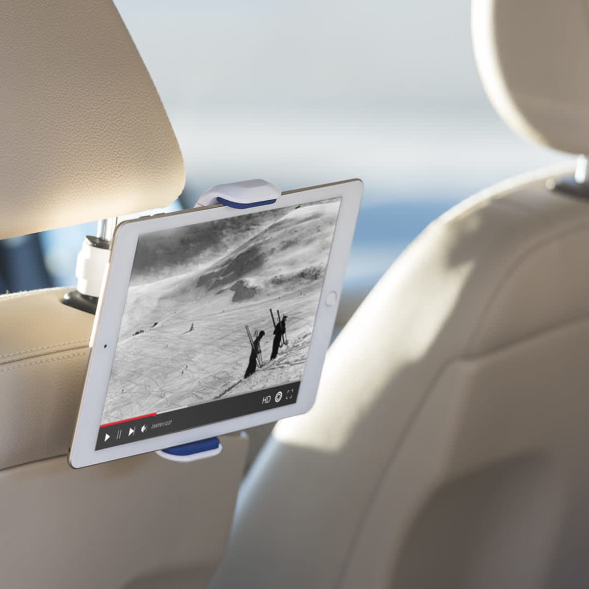 For attachment to the car headrest bar. In a wide range of tones, 360º rotation, and with non-slip rubber pads.