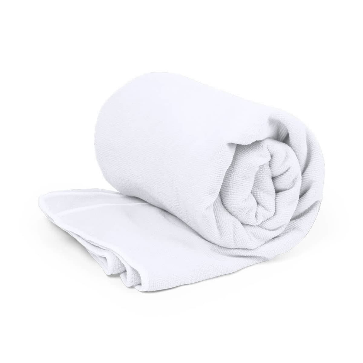 Made from recycled plastic to promote the reuse of plastic waste and contribute to the sustainability of the planet. Size 90x170 cm and available in a wide range of colours. With RPET logo on the label.