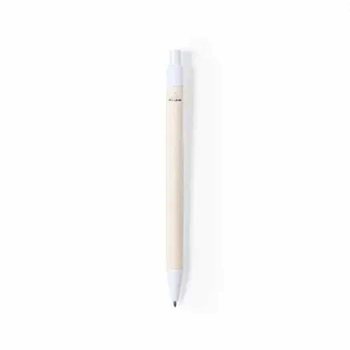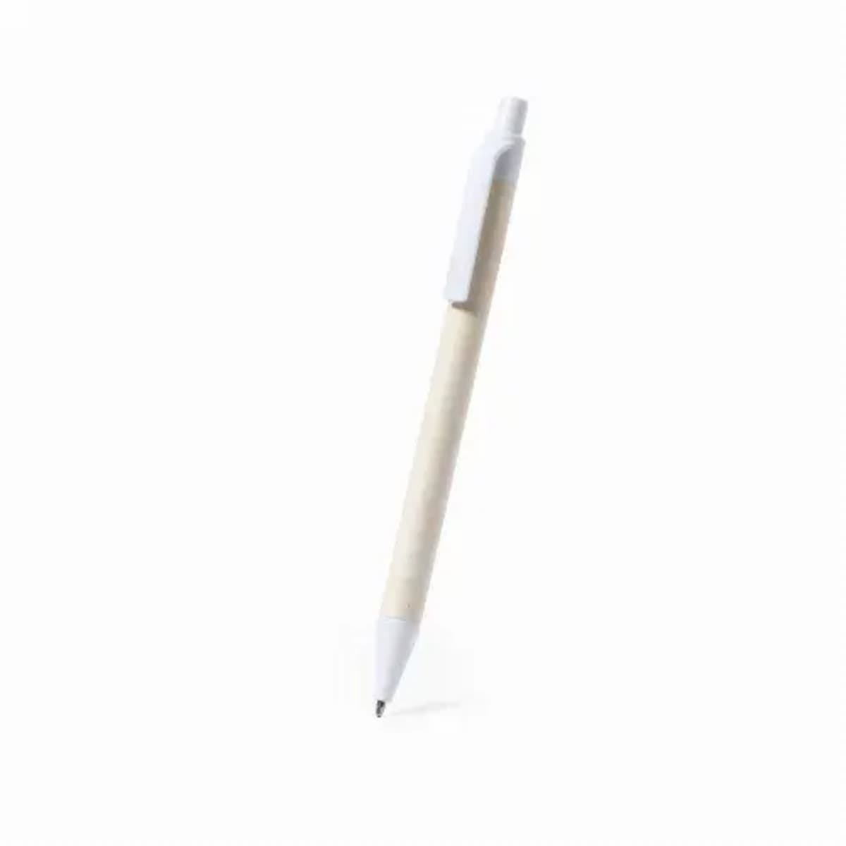 Nature line ball pen with barrel made from recycled milk cartons and white fittings.