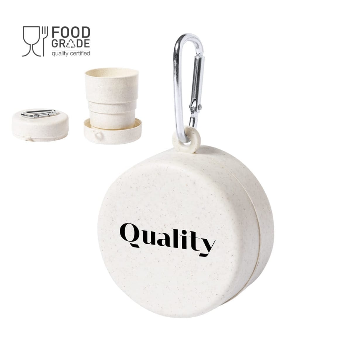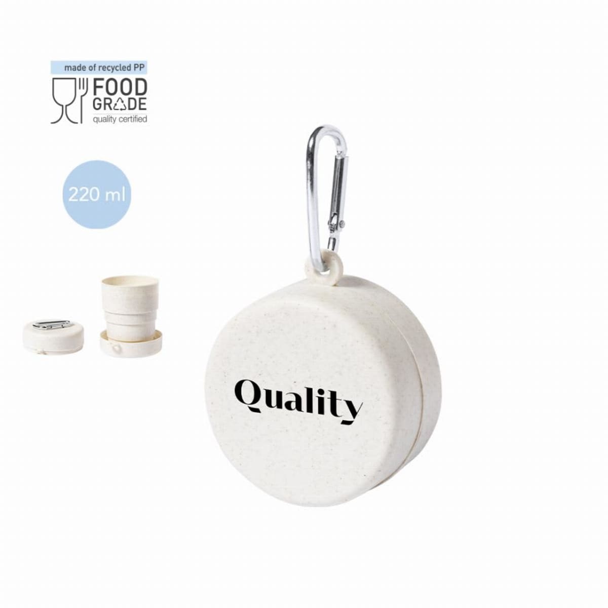 Unique folding cup for emergencies, made in BPA-free veined PP.