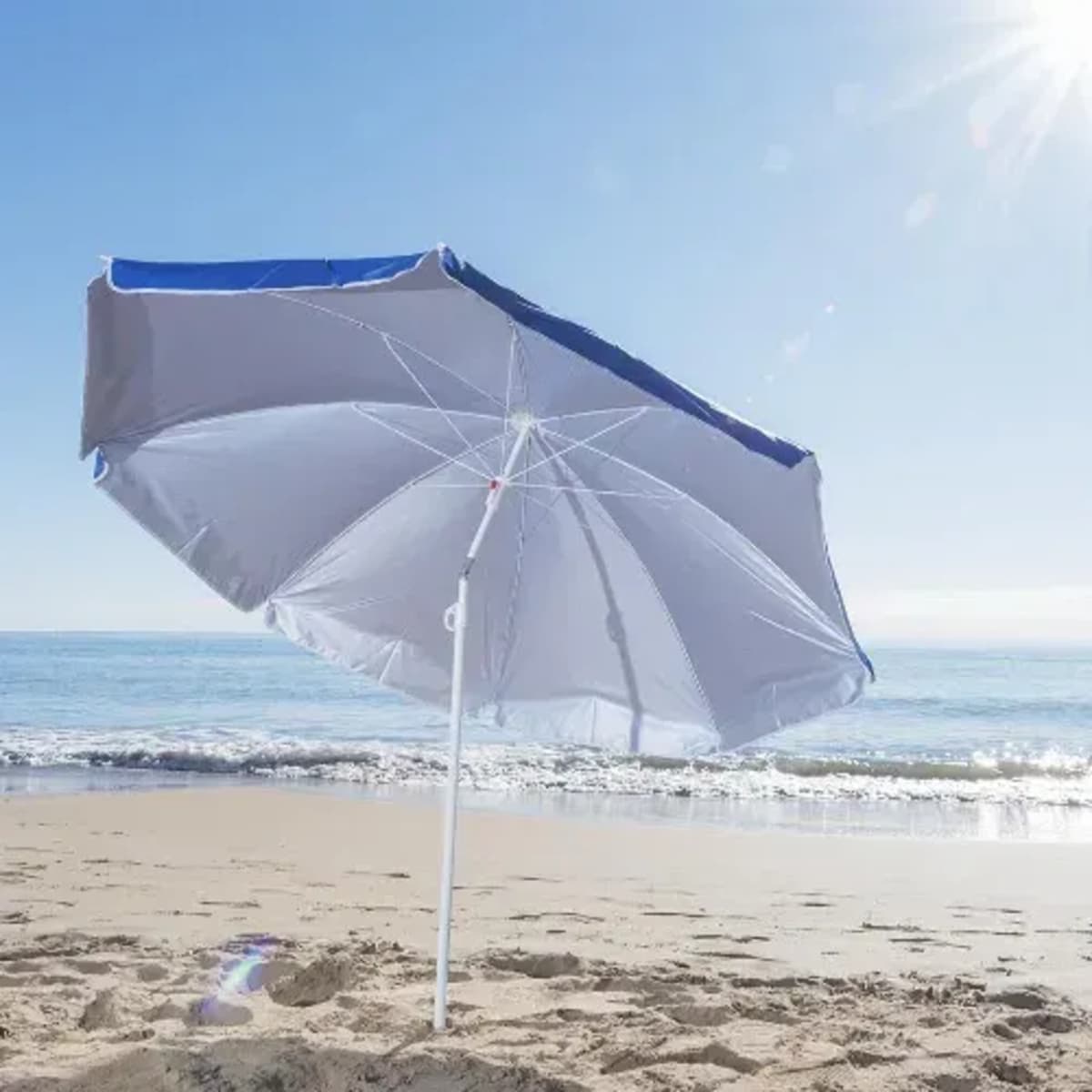 Beach umbrella of 8 panels in resistant nylon, with silver color, UV protection layer.