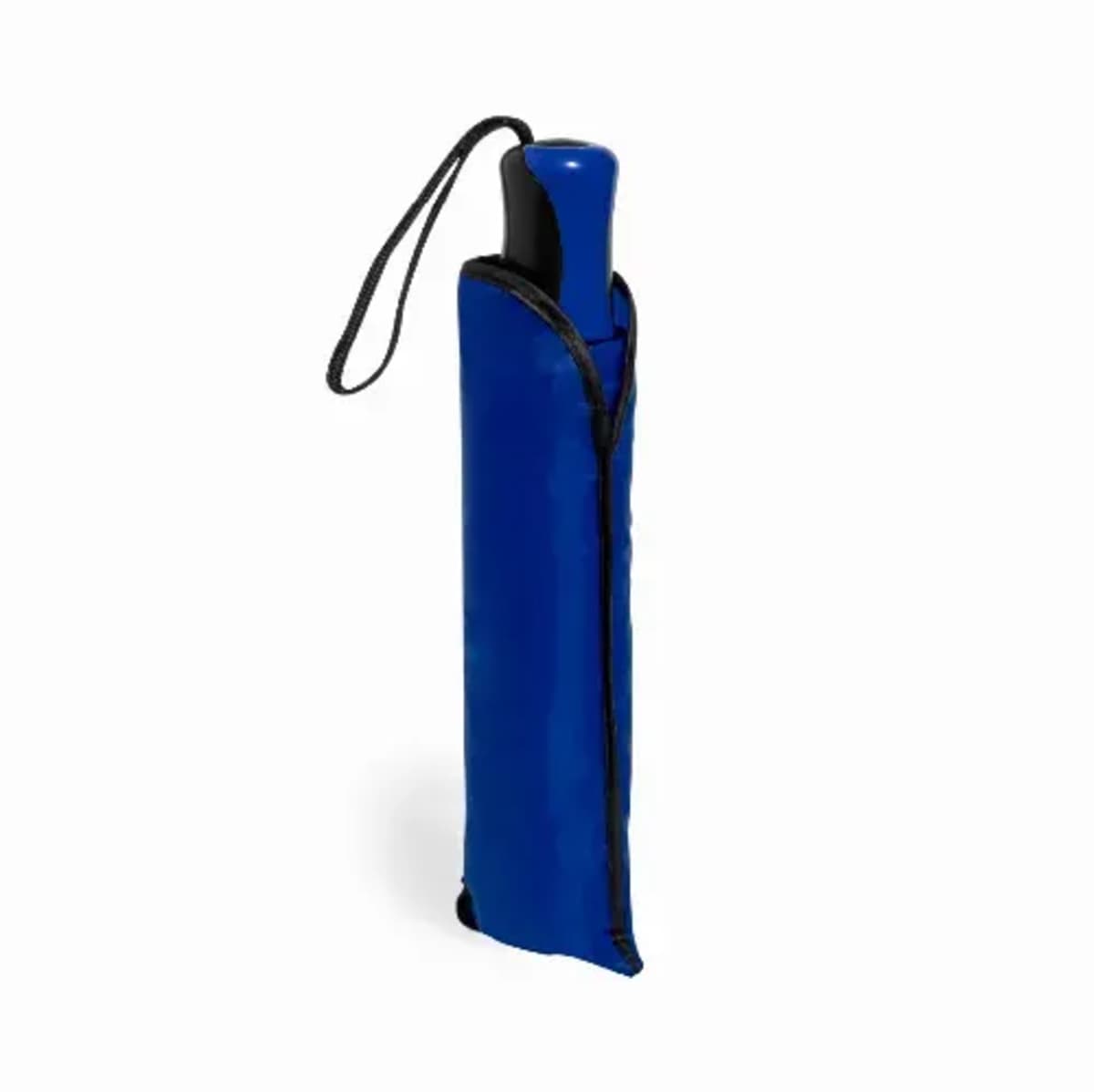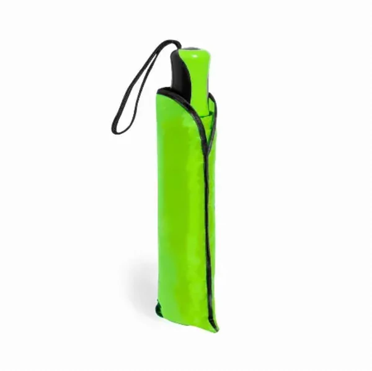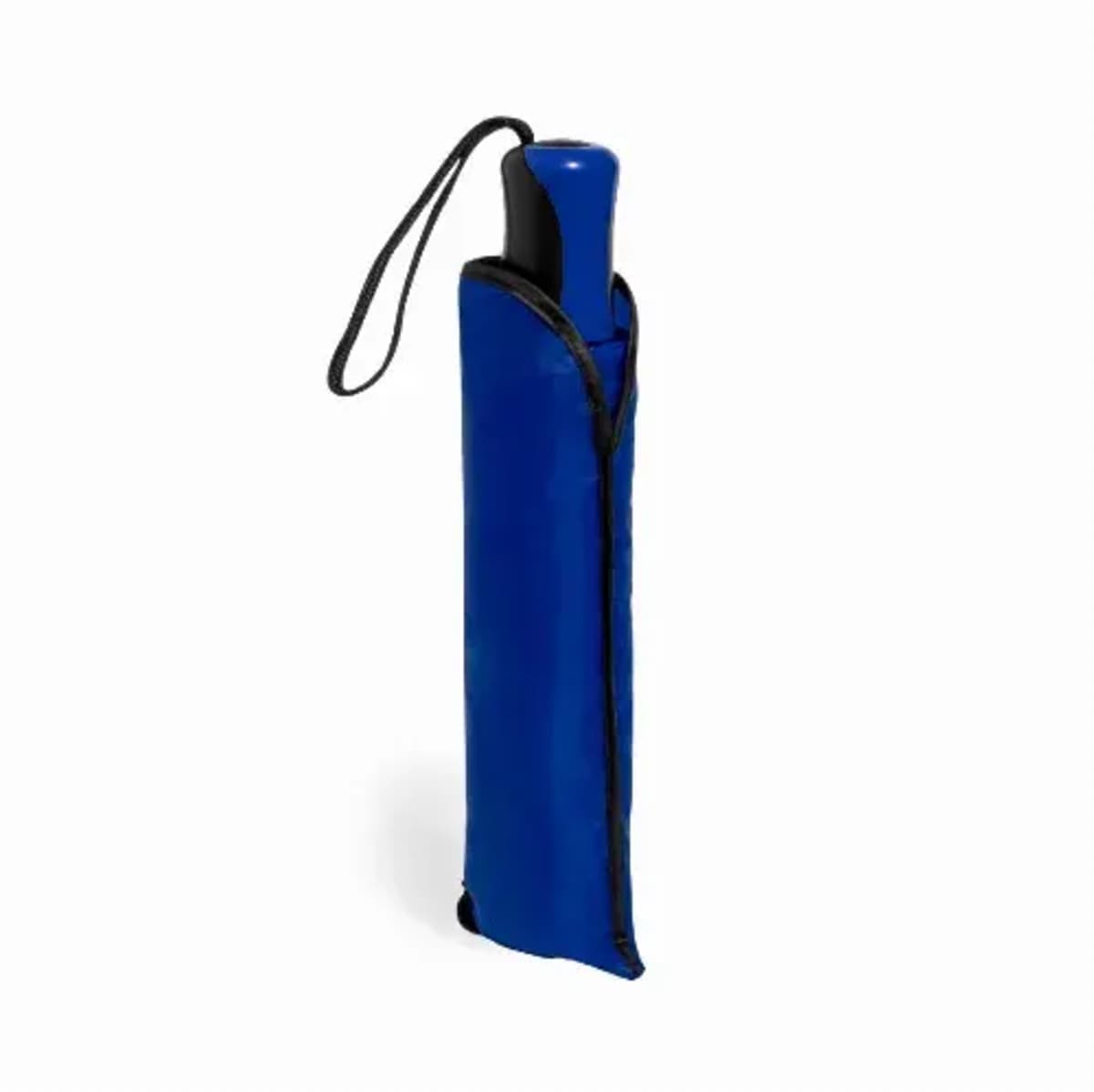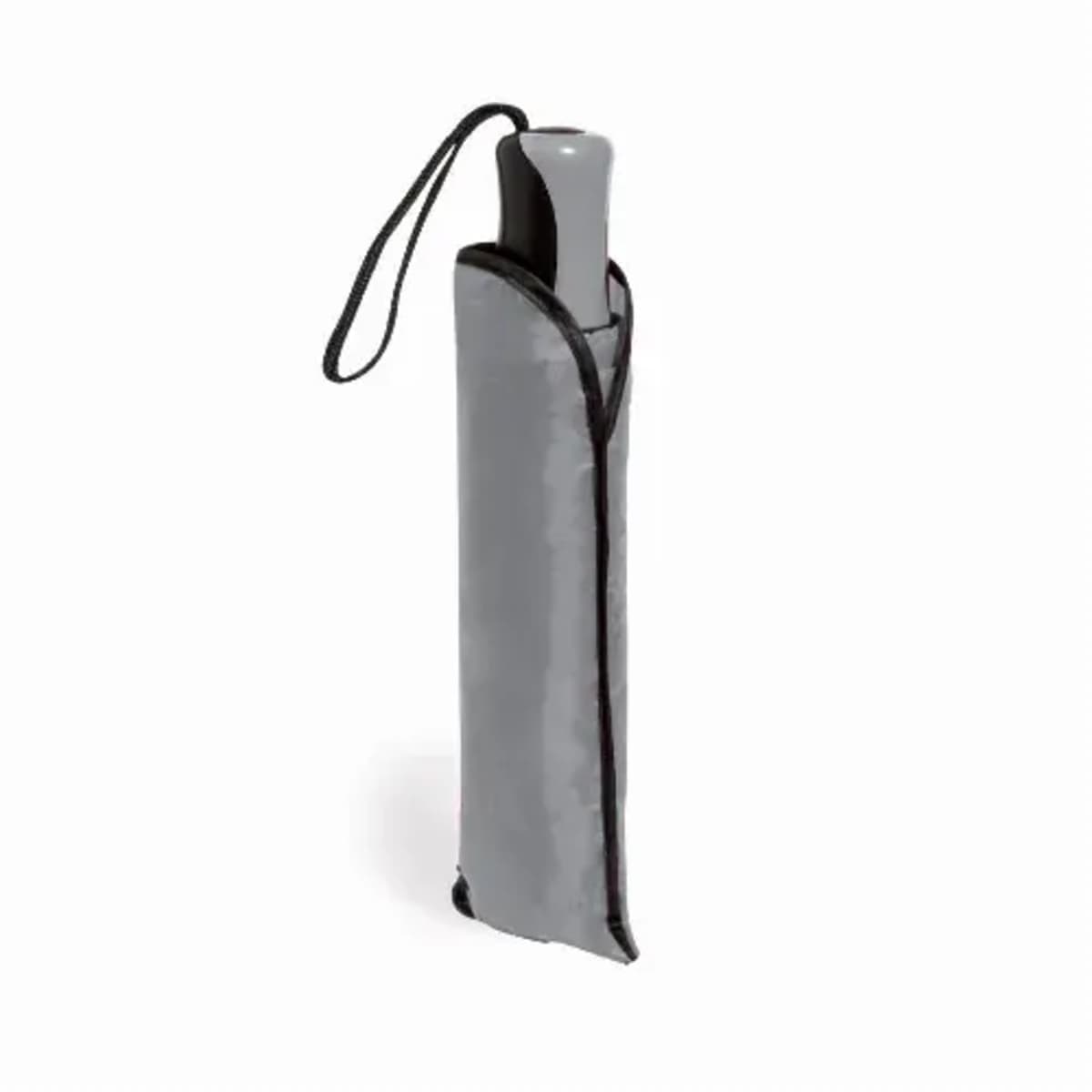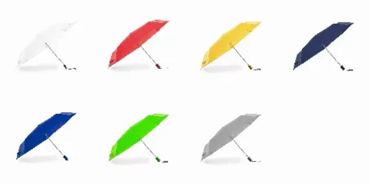 Manual opening, with silver coloured metal ribs and velcro fastening. Ergonomic handle with carrying strap and matching protective sleeve. Available in a wide range of colours. Presented in an individual recycled bag.