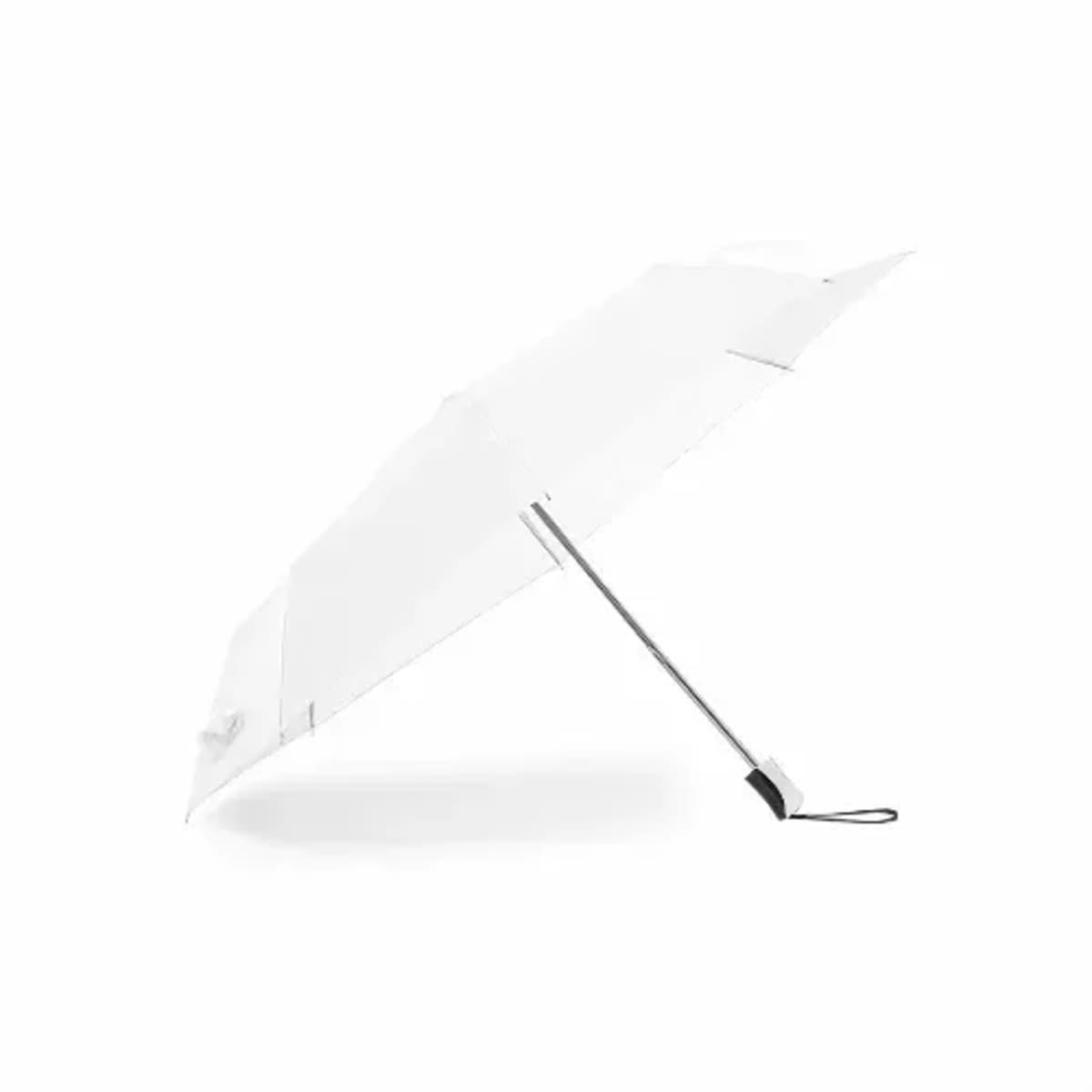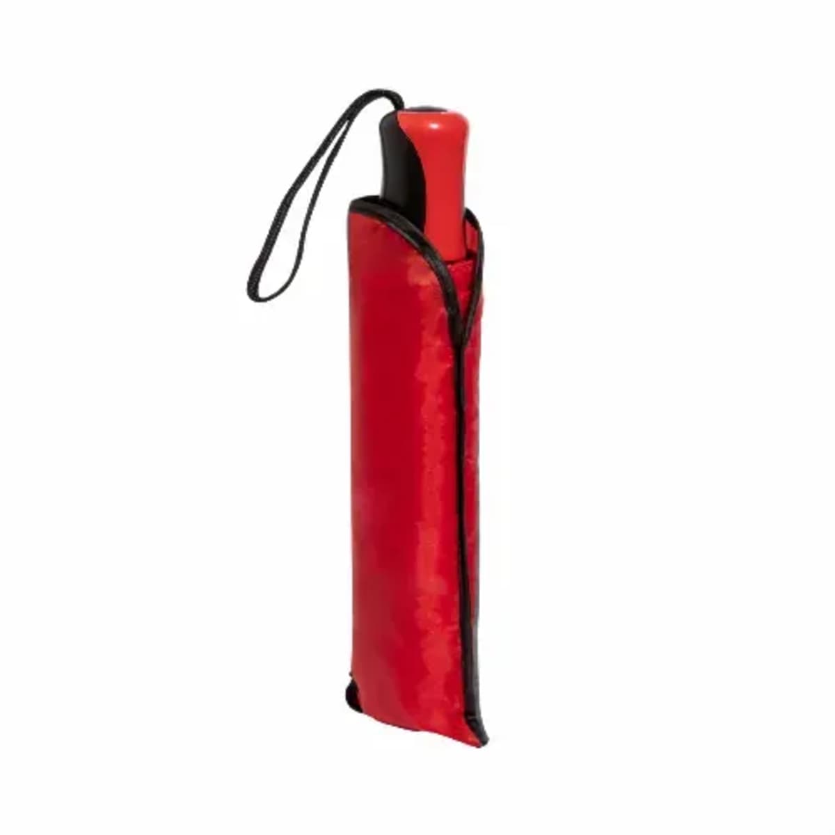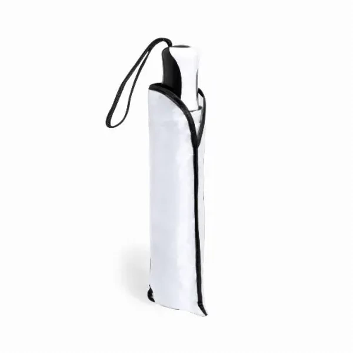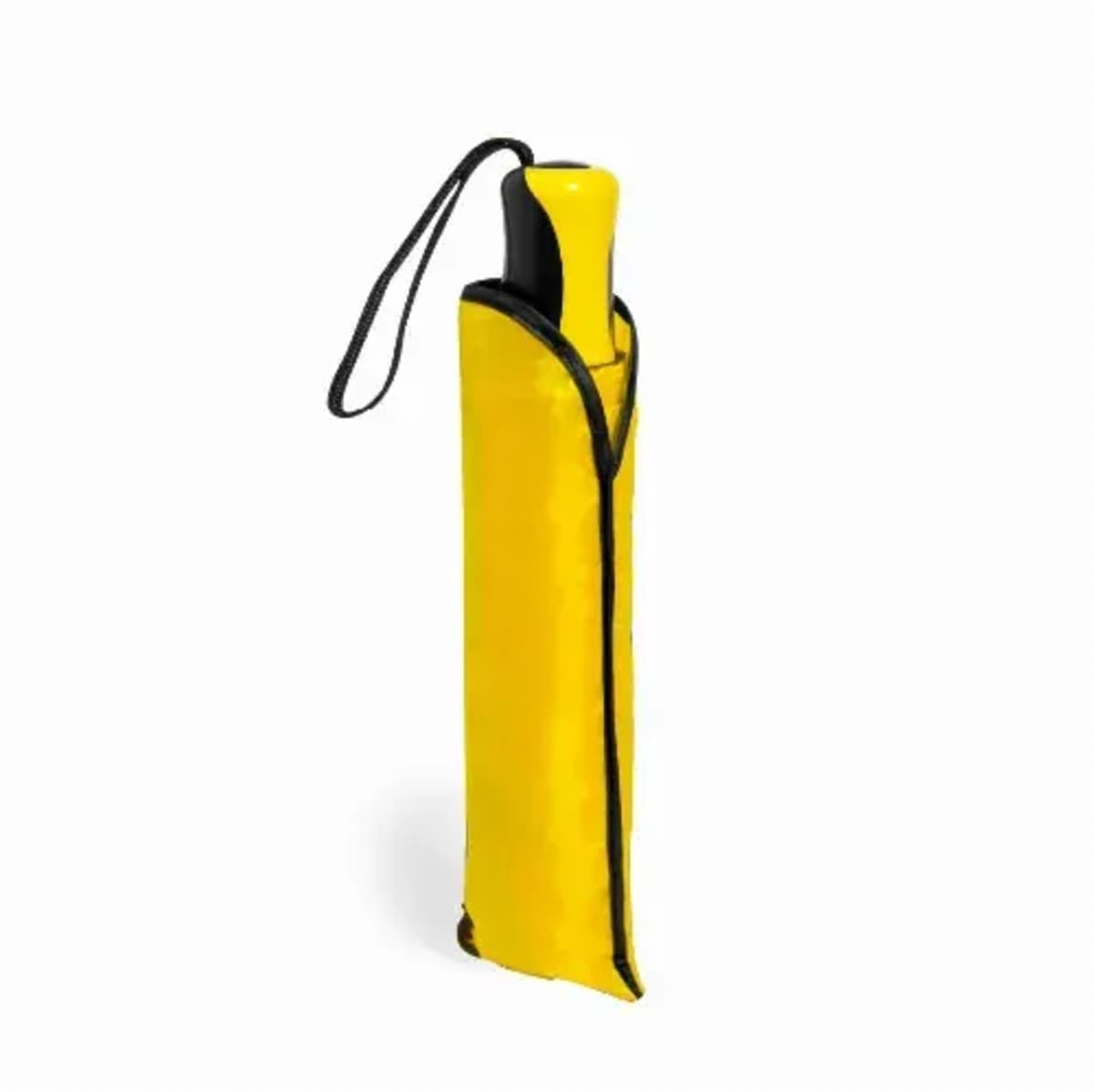 Manual opening, with silver coloured metal ribs and velcro fastening. Ergonomic handle with carrying strap and matching protective sleeve. Available in a wide range of colours. Presented in an individual recycled bag.