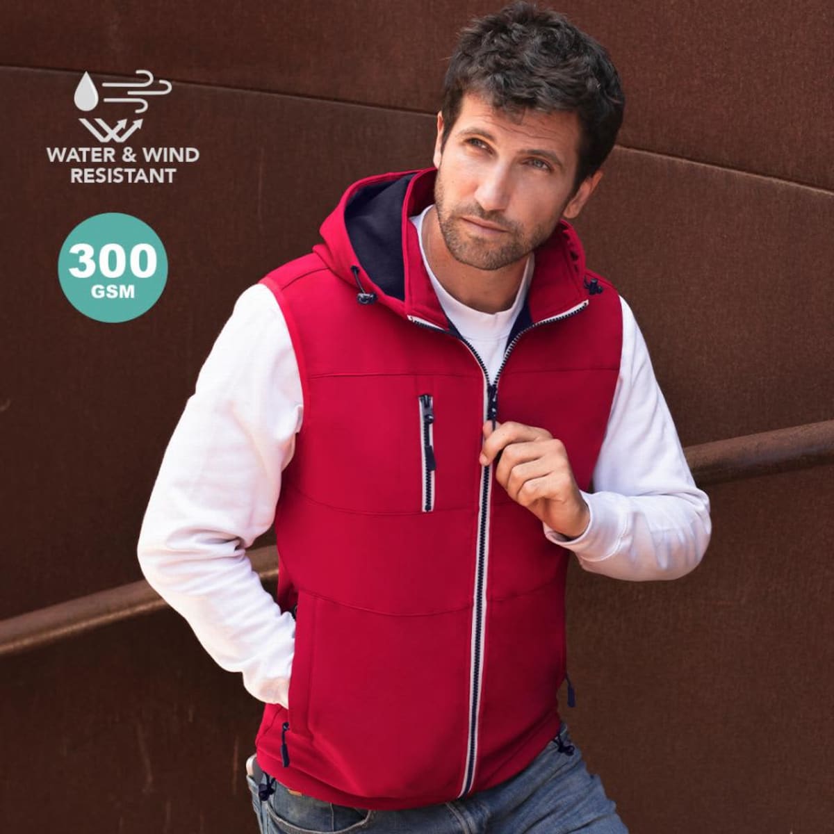 Vest made of durable and breathable 300g/m2 soft shell material.