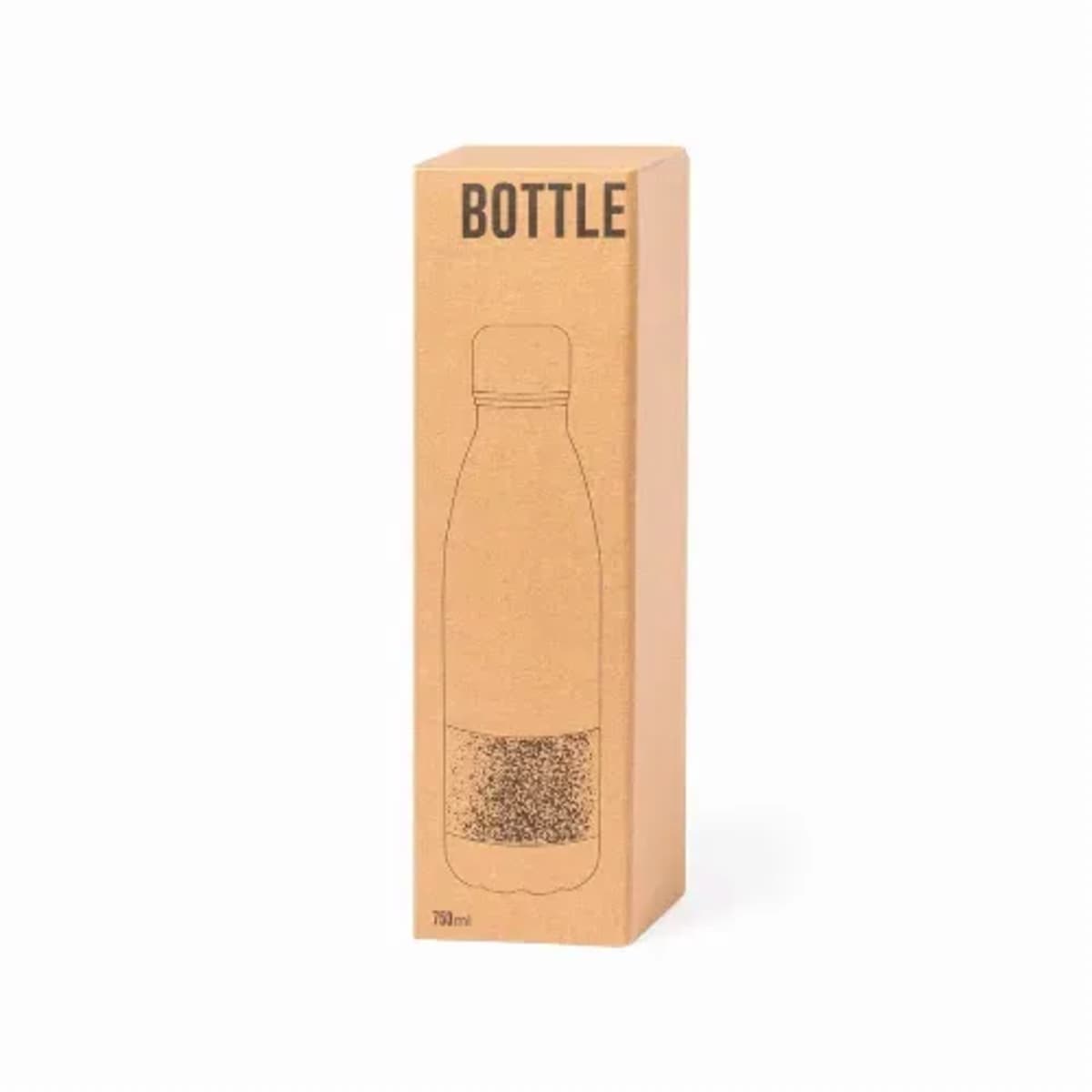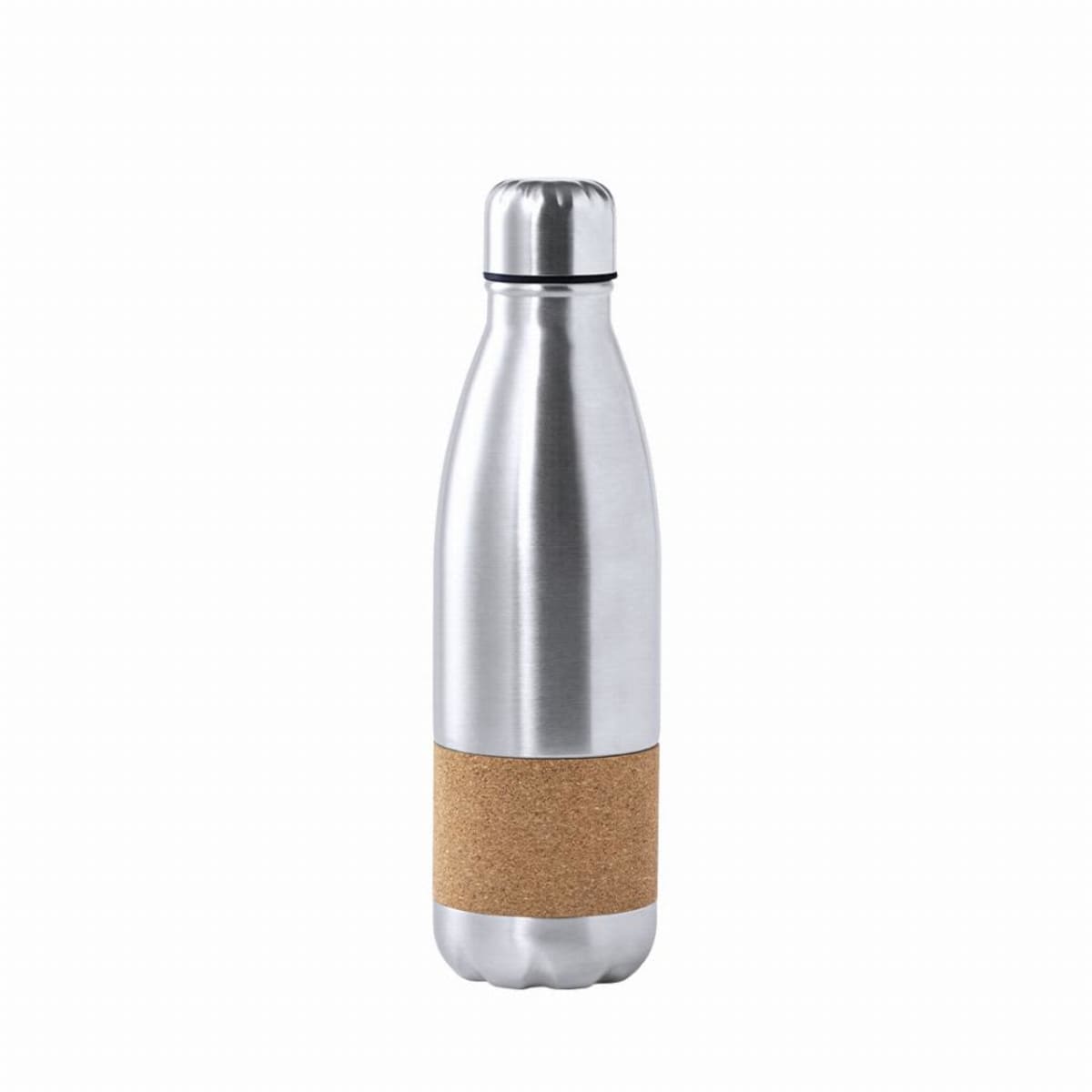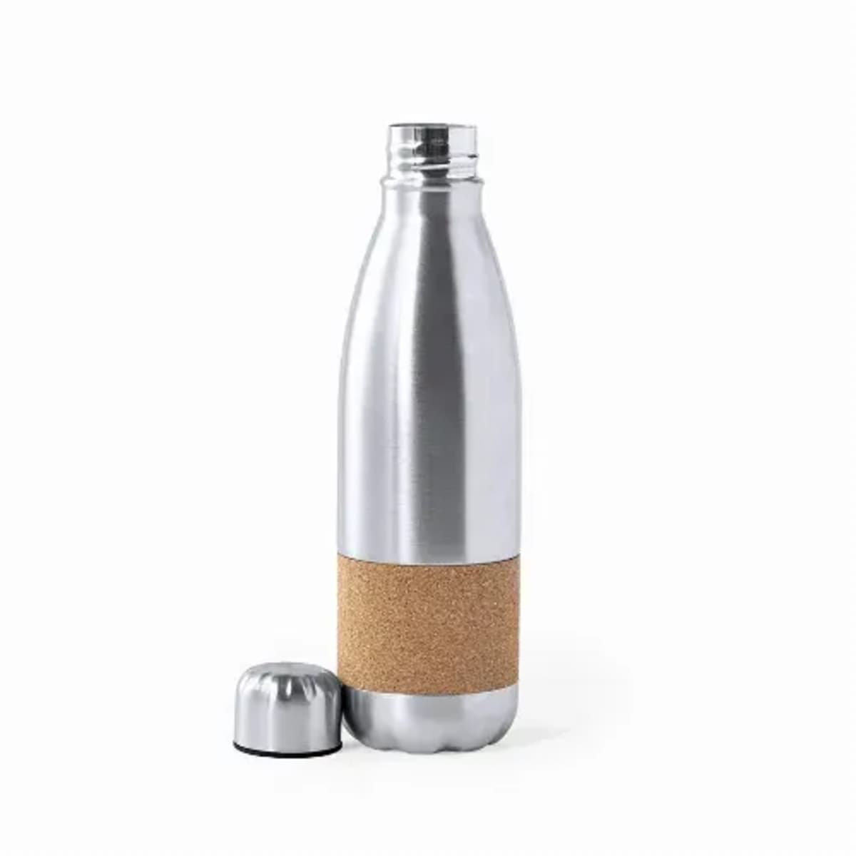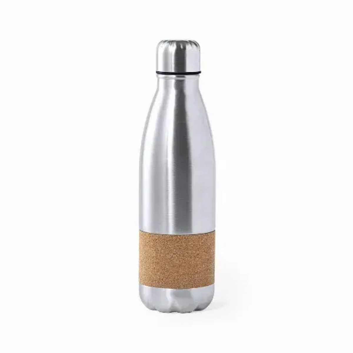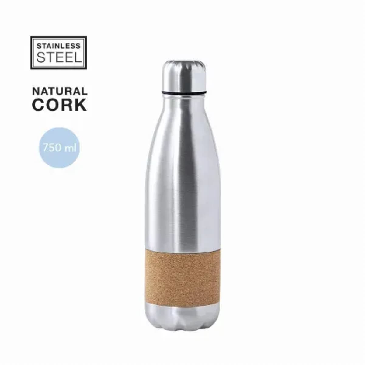 Nature line bottle, in a combination of matt finish stainless steel and cork.