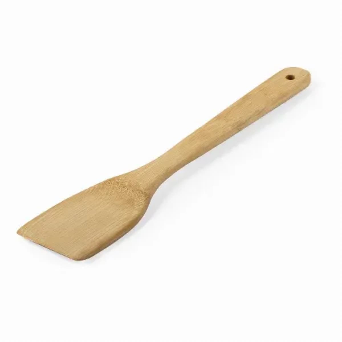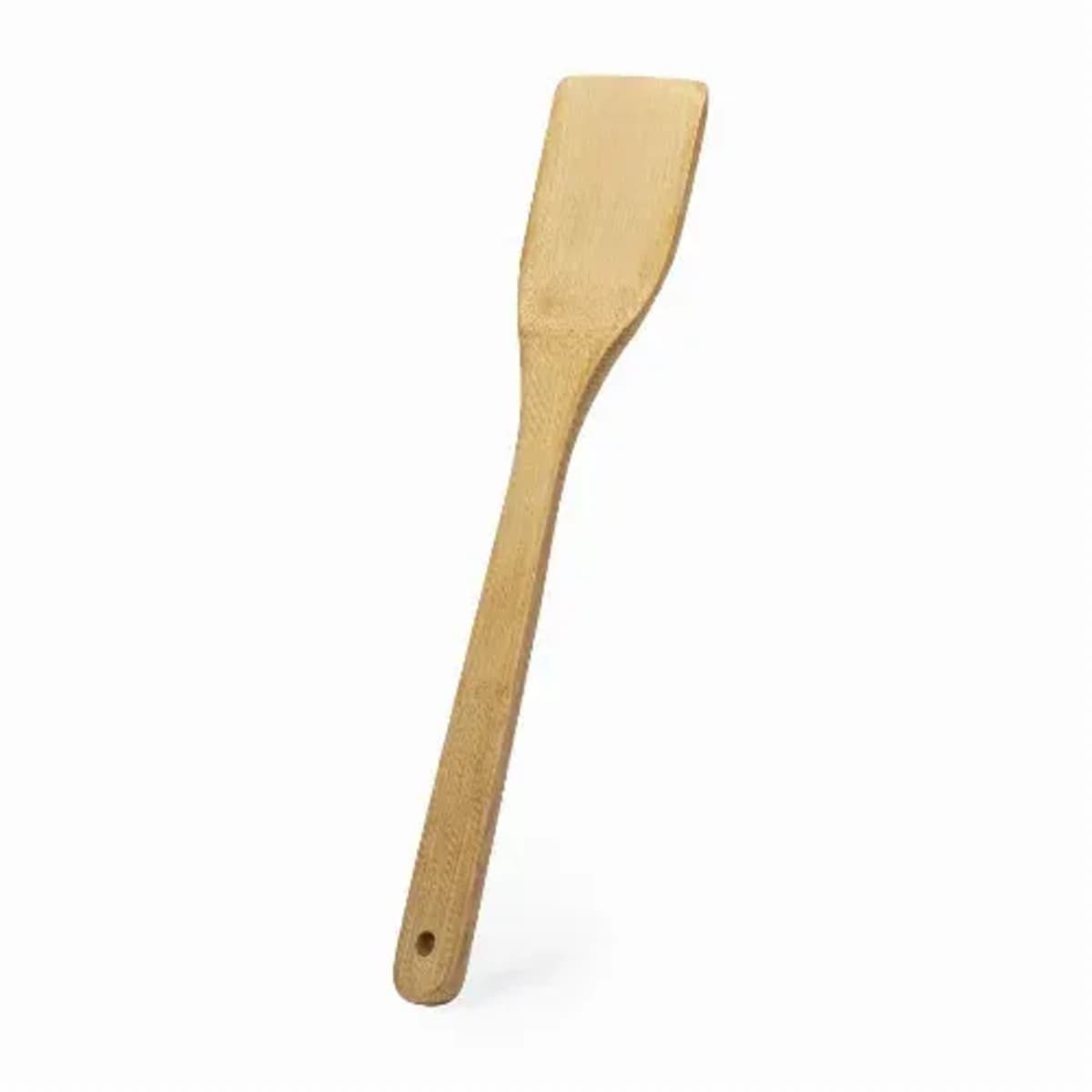Kitchen spatula in nature line manufactured in polished bamboo, with die-cut handle for hanging..