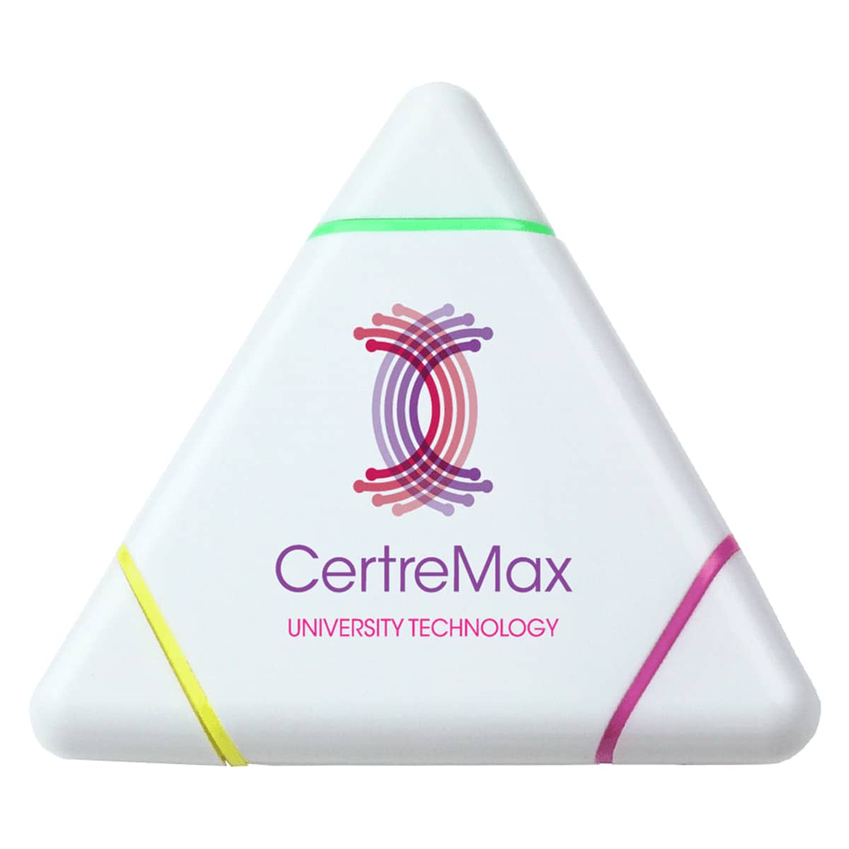Triangular Highlighters are a budget-friendly promotional gift with a large branding area and three vibrant colours — yellow, pink, and green. Practical, unique, and memorable for any marketing opportunity.