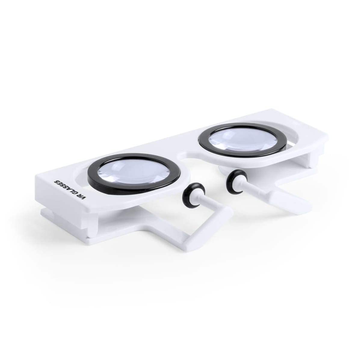 Foldable and compact virtual reality glasses, with adjustable lenses and compatible with all types of smartphones. Suitable for 3D and 360º videos and presented in an individual plastic cases with a large printing surface.