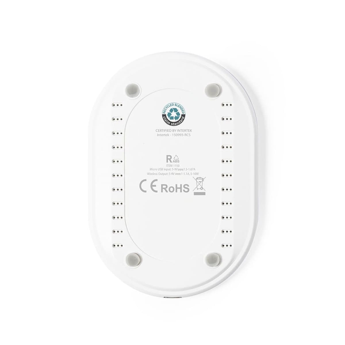 Housing in recycled ABS (RABS), with RCS certification, guaranteeing its recycled origin. Charging cable included, non-slip base and compatible with devices equipped with wireless charging technology. Presented in an attractive eco-design box. Instru