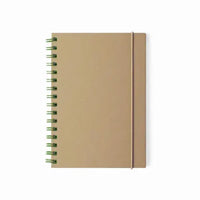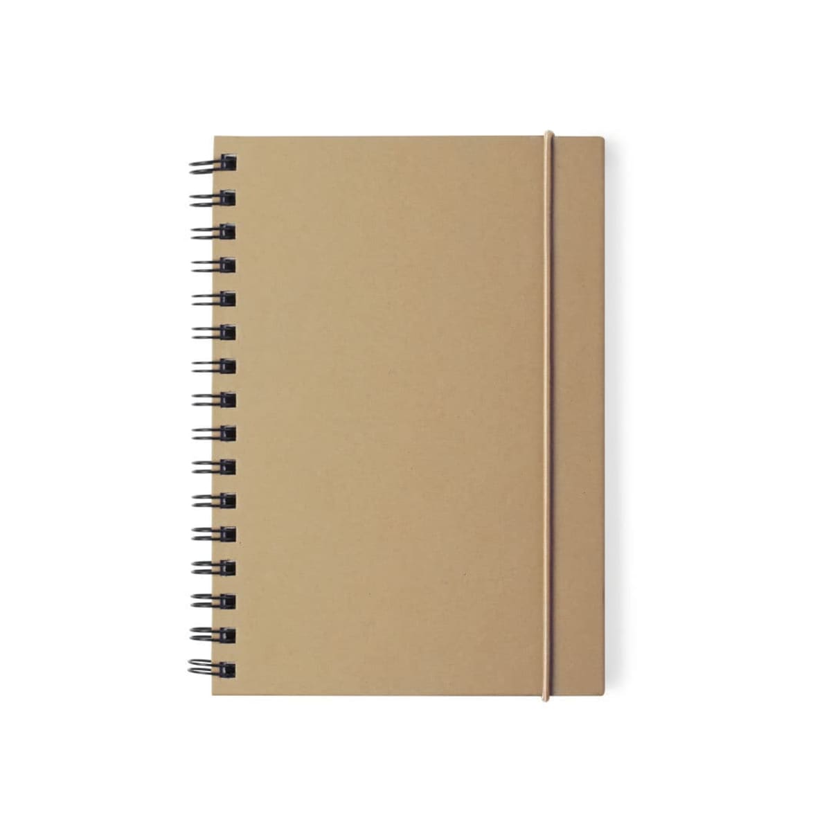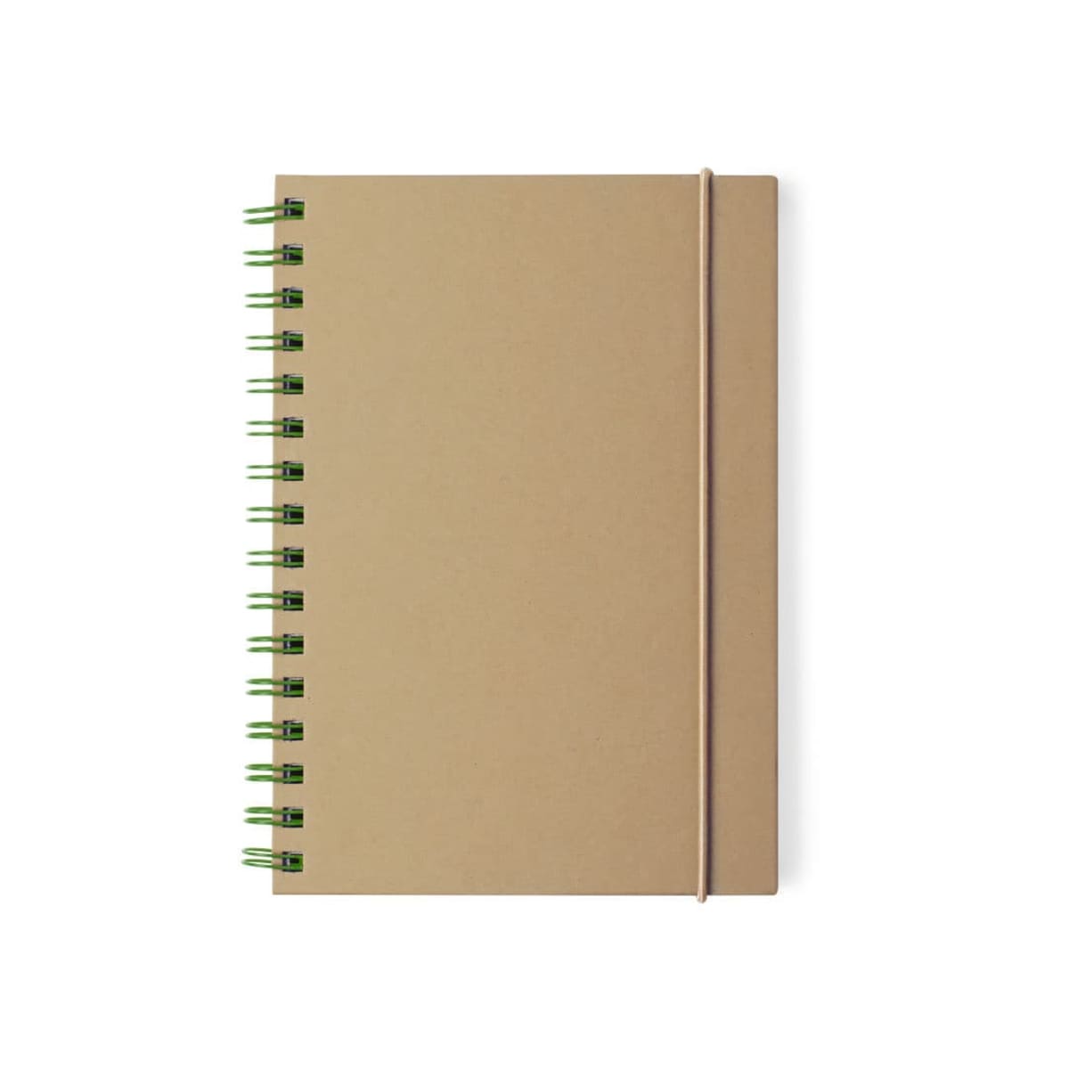 Hard covers in recycled cardboard and elastic band in natural colors. With 80 sheets in striped layout and eco design.